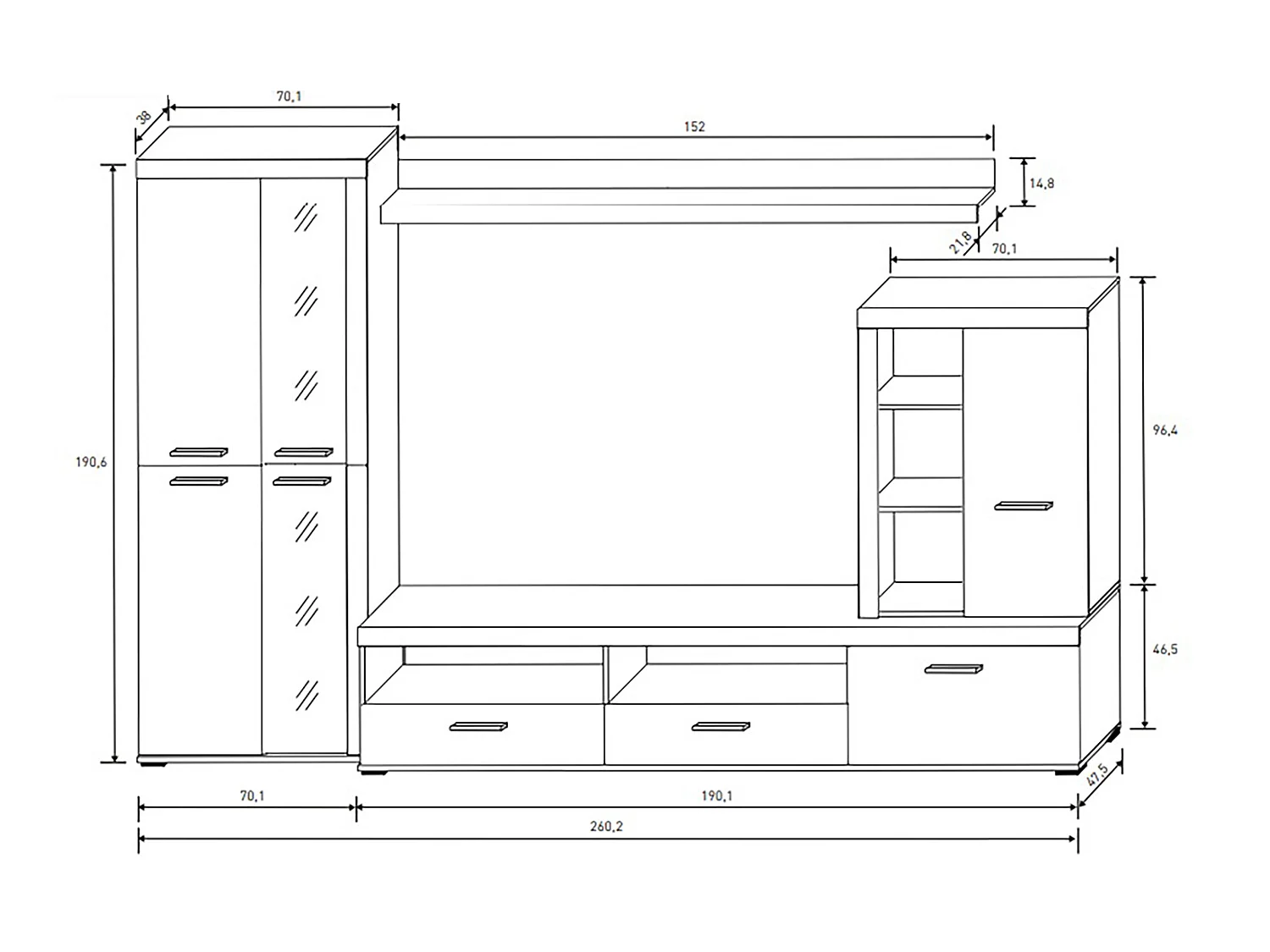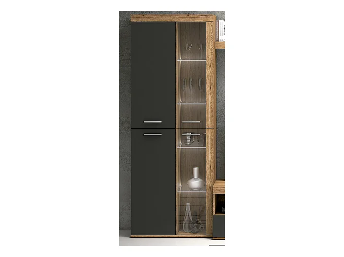 Ensemble de salon meuble TV + 1 étagère murale + armoire + meuble haut coloris chêne cambrian, graphite