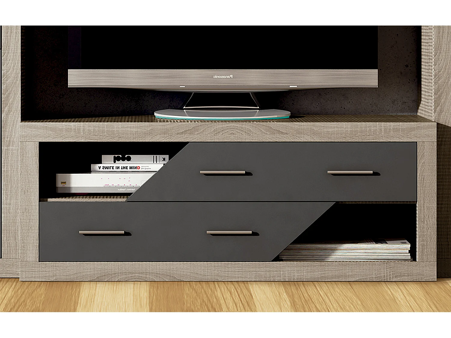 Ensemble de salon, meuble TV + étagère murale + vitrine coloris chêne cambrian, graphite
