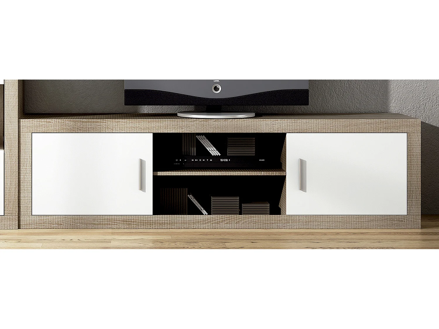 Ensemble de salon, meuble TV + meuble haut + set de 2 étagères + buffet coloris chêne cambrian,blanc