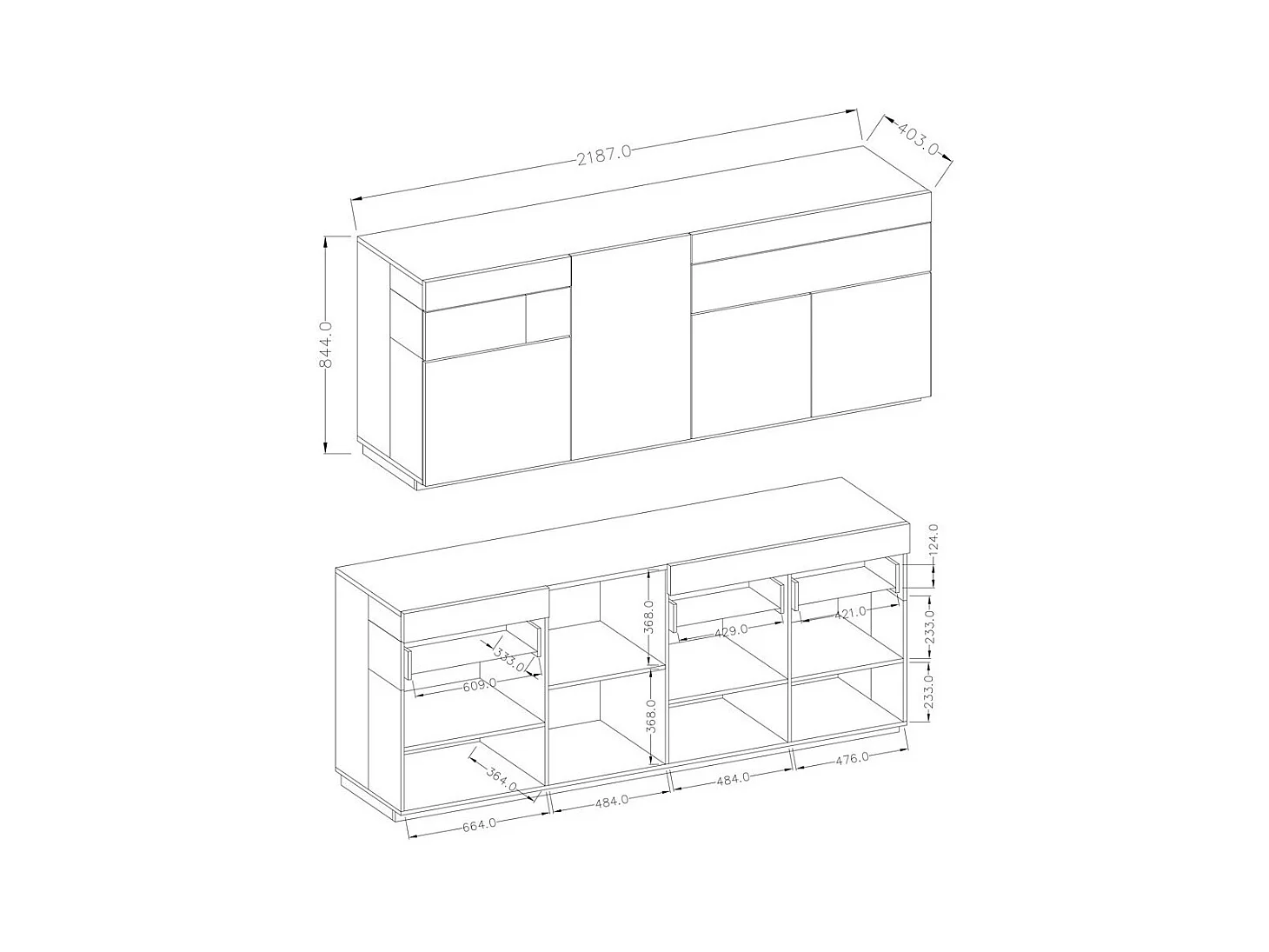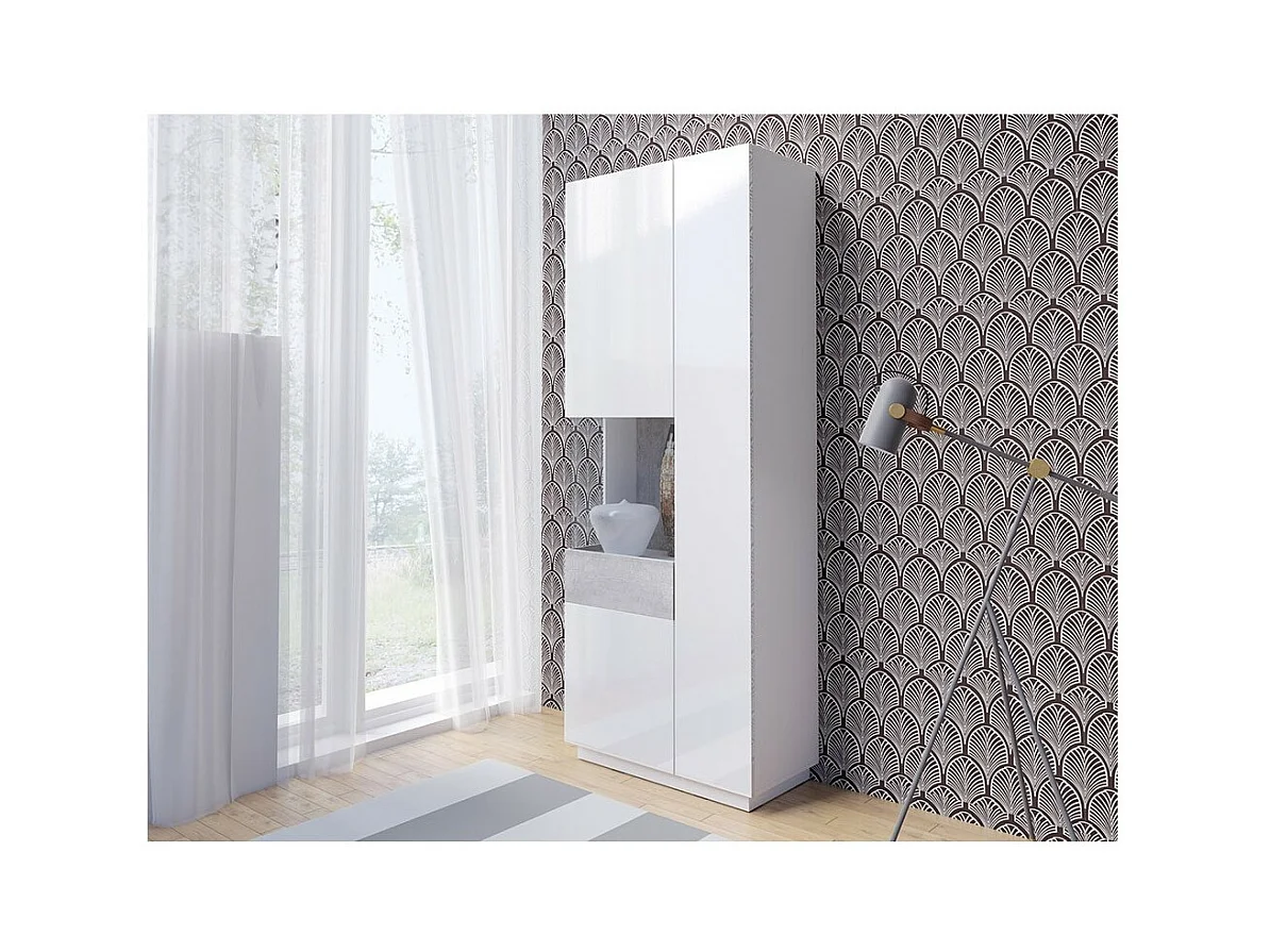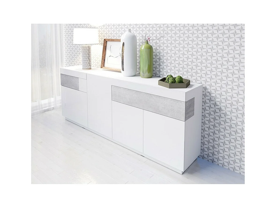 Ensemble de salon vitrine et buffet collection KILES. Coloris blanc et gris.