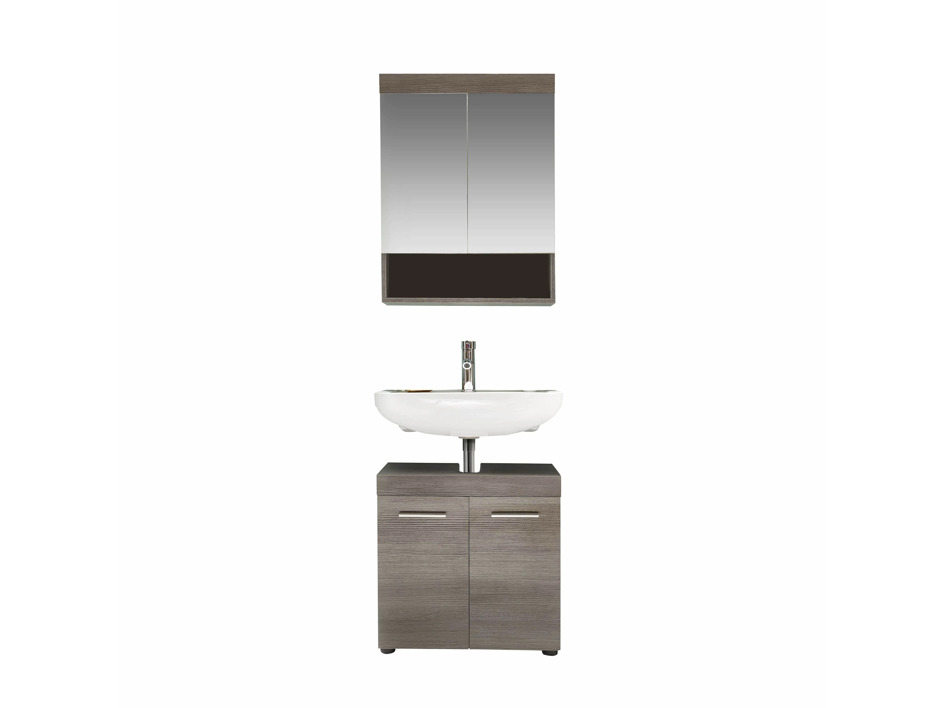 Ensemble de SDB - 2 meubles en mélaminé bois grisé, vasque non incluse. L-H-P : 58 - 190 - 31 cm