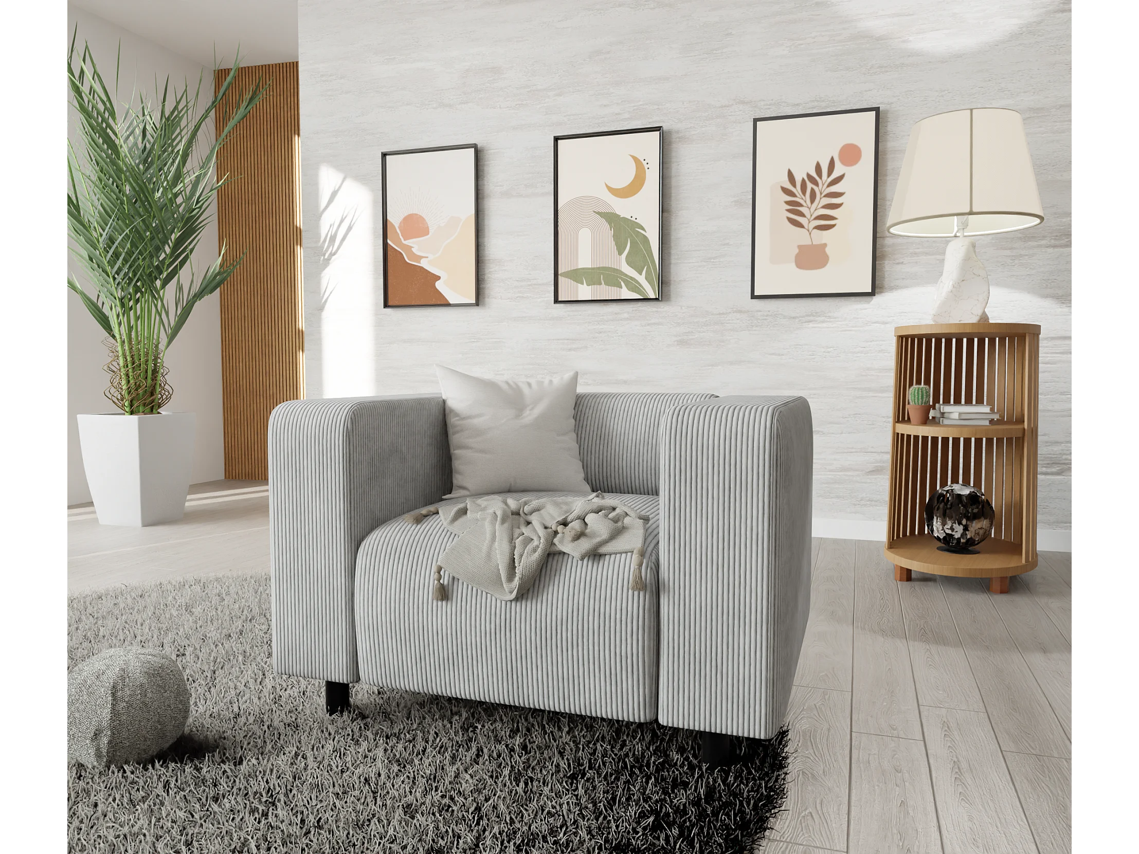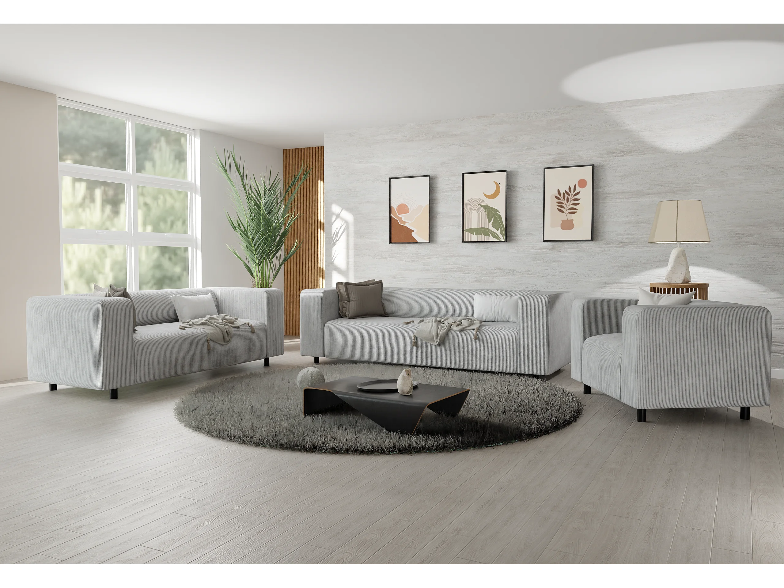 Ensemble de sièges moderne 3+2+1 en velours côtelé gris clair avec assise confortable THORA