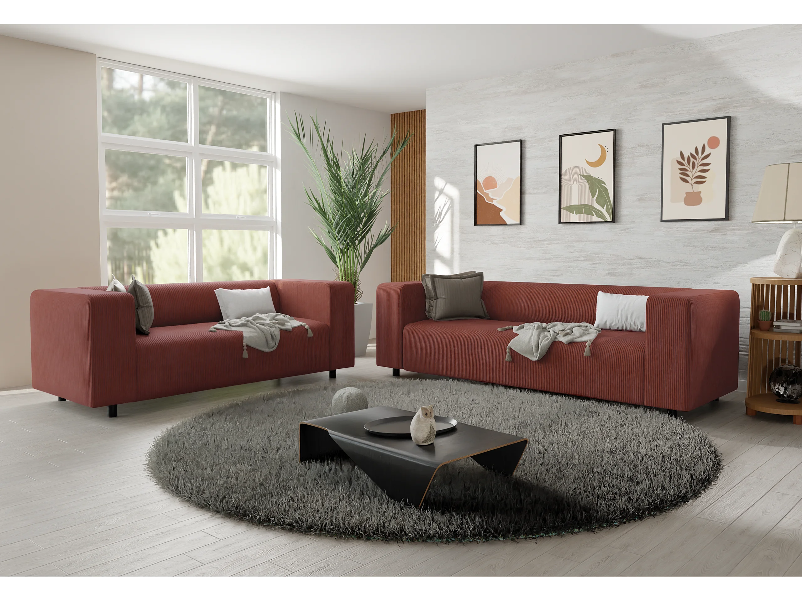 Ensemble de sièges moderne 3+2 en velours côtelé terracotta avec assise confortable THORA