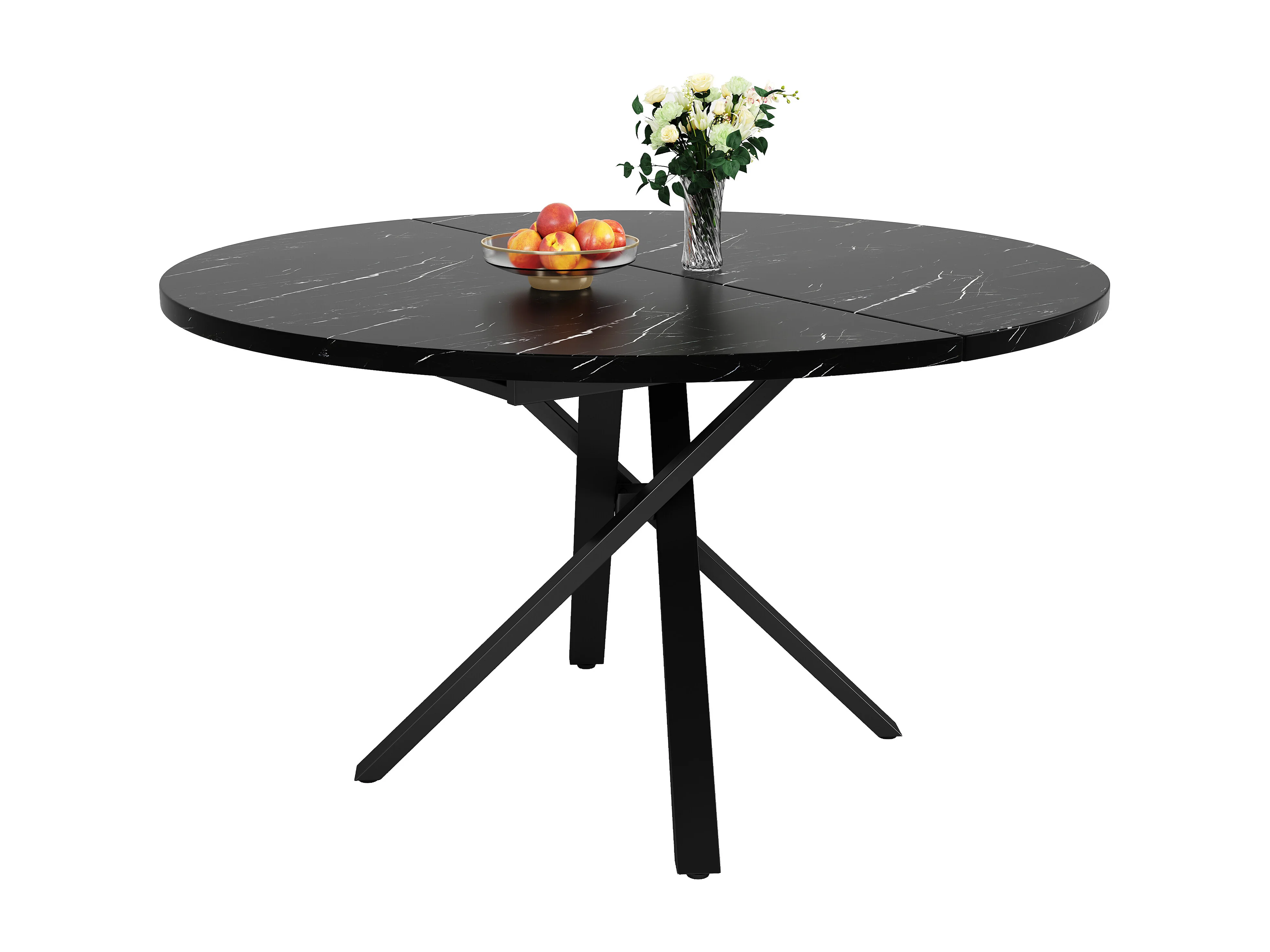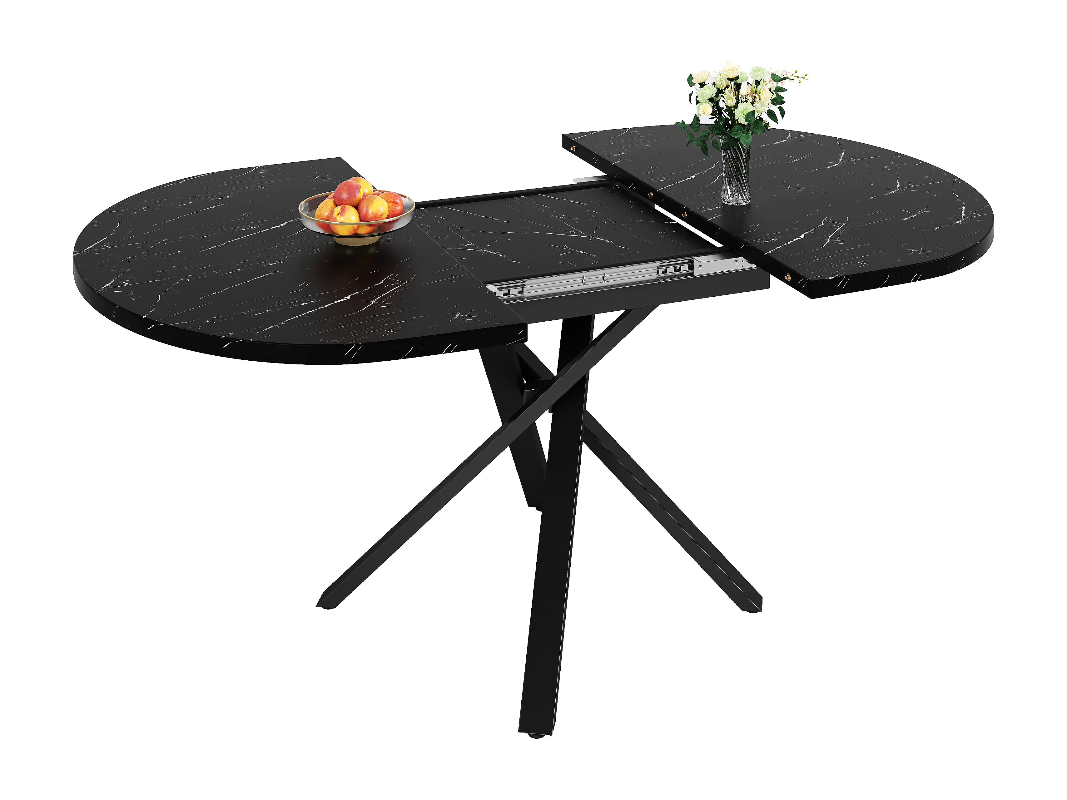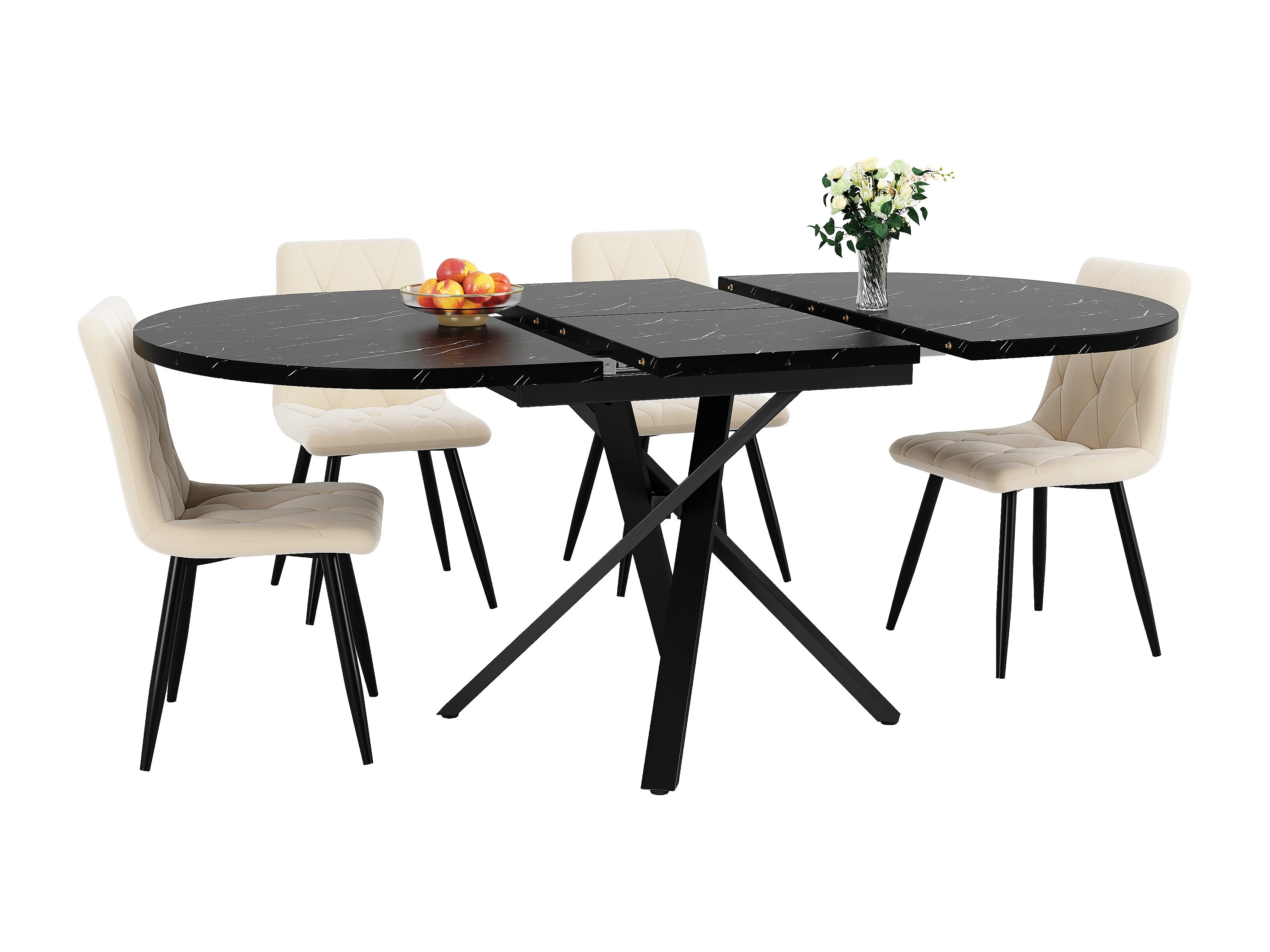 Ensemble de table à manger 5 pièces avec table extensible (100-140 cm) + 4 chaises en velours - MDF + métal - beige + noir