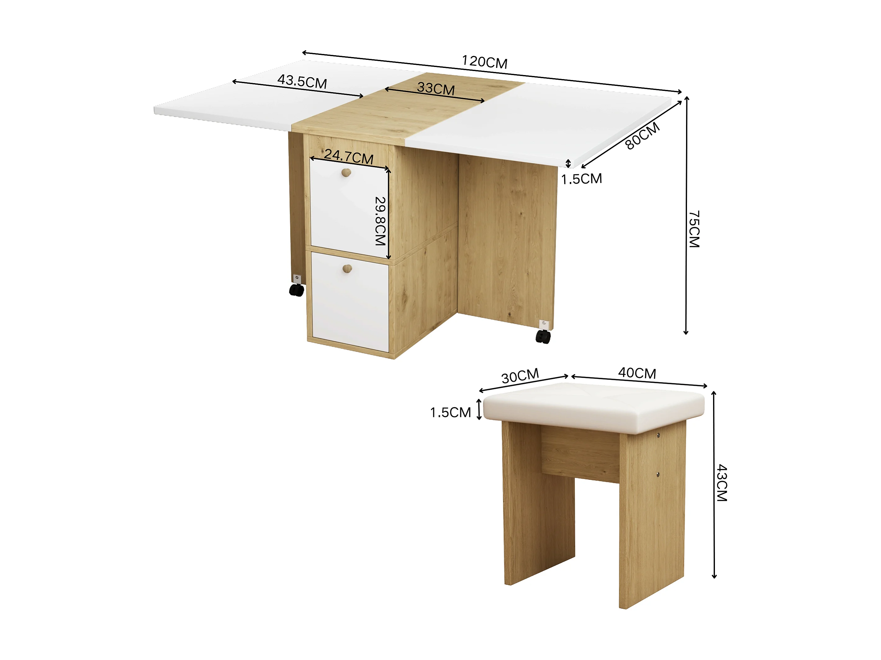 Ensemble de table à manger rétractable pliable (avec table à manger, 4 chaises), 120 * 80 * 75cm, chêne blanc