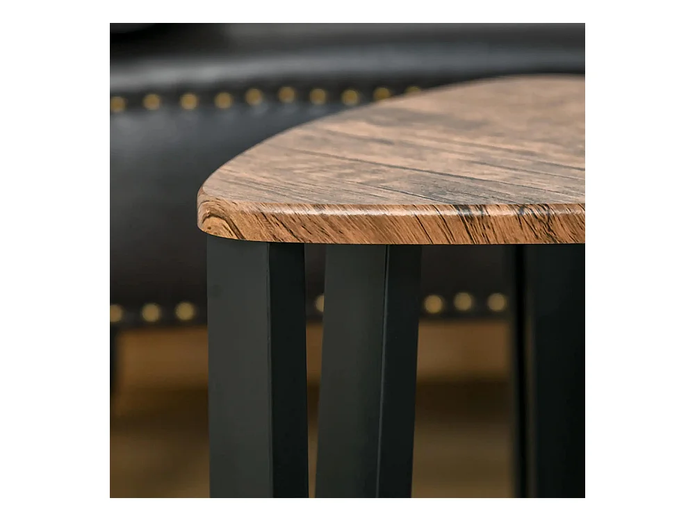 Lot de 2 tables basses design industriel géométrique - effet bois et acier noir