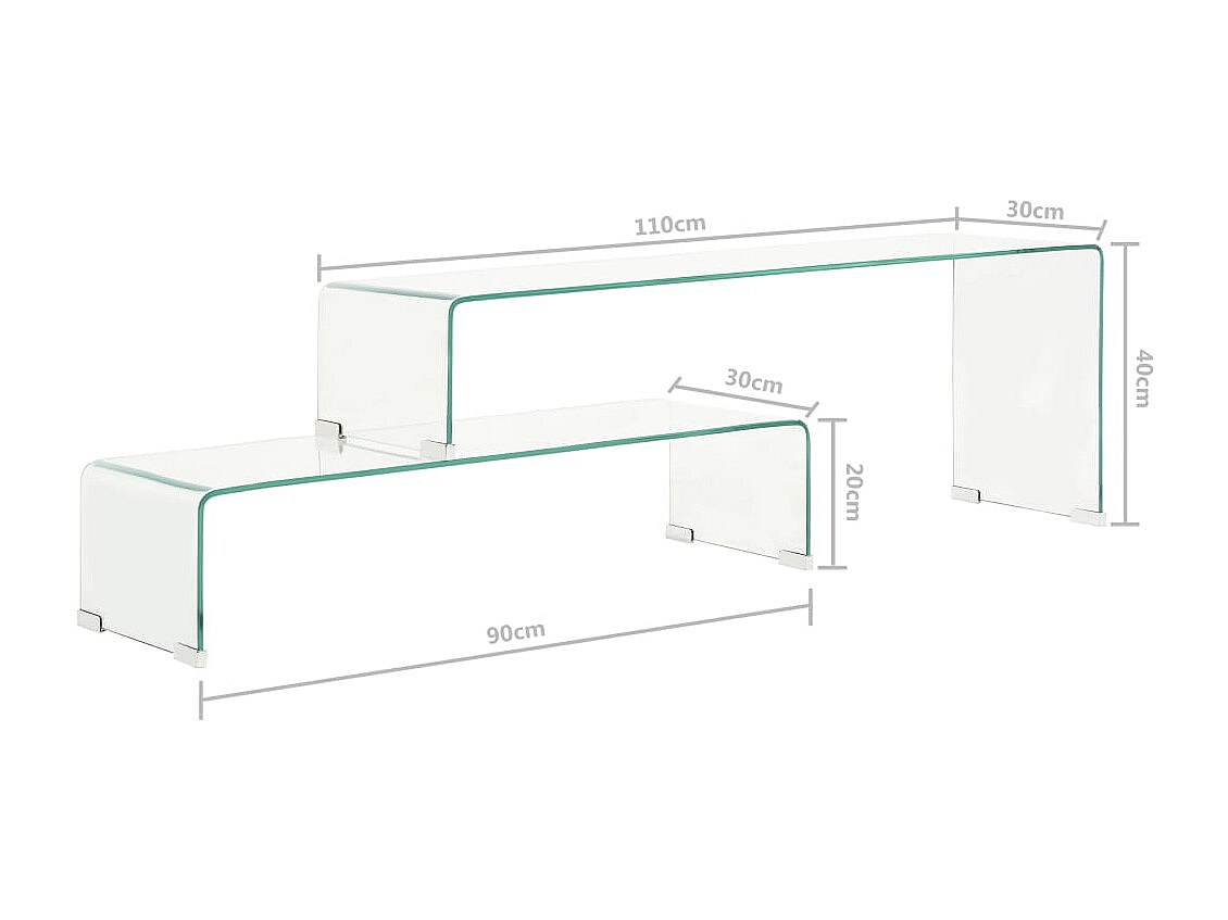 Ensemble de Table basse salon 2 pièces 90x30x20/110x30x40cm Verre trempé SHL2455