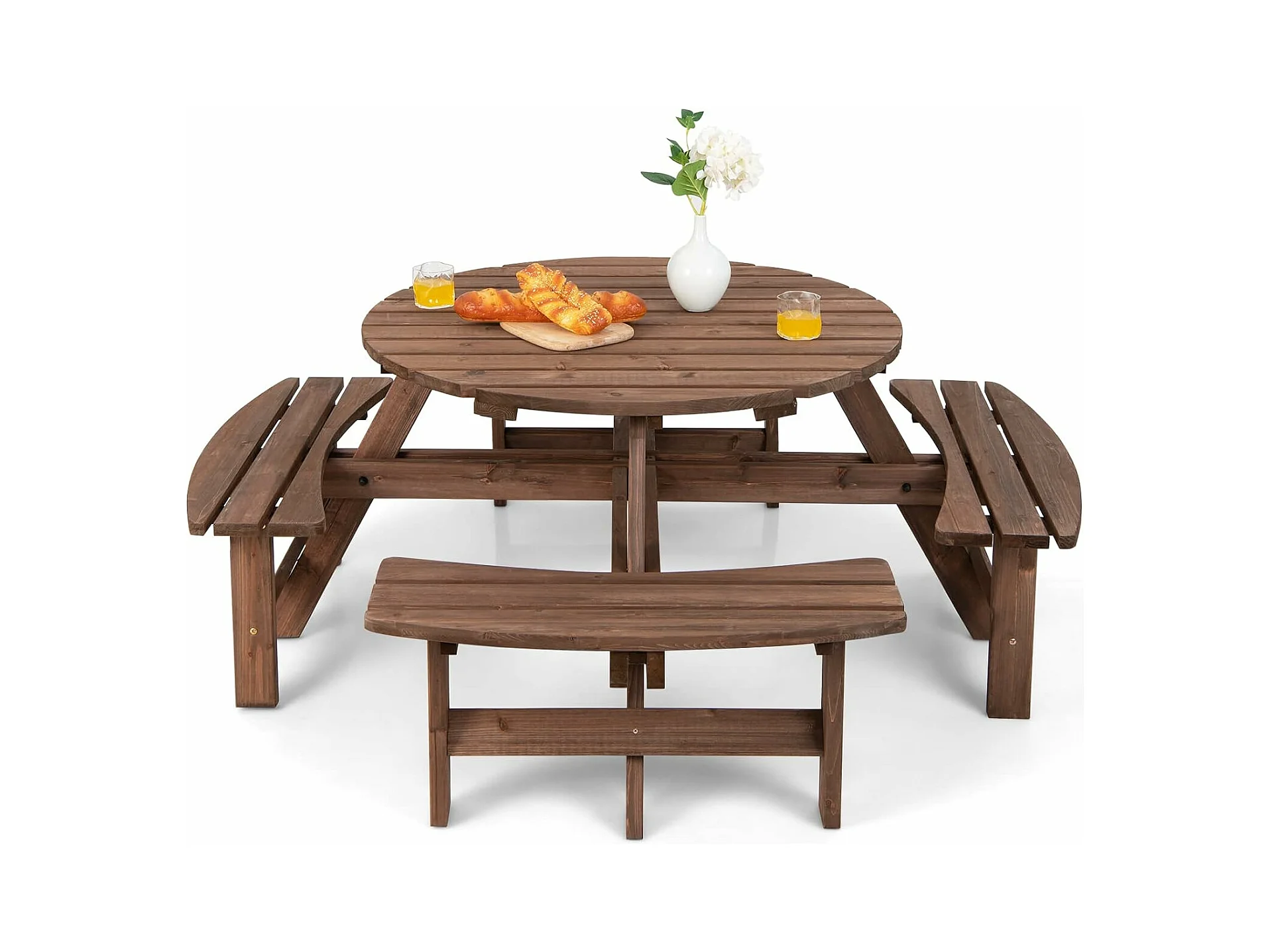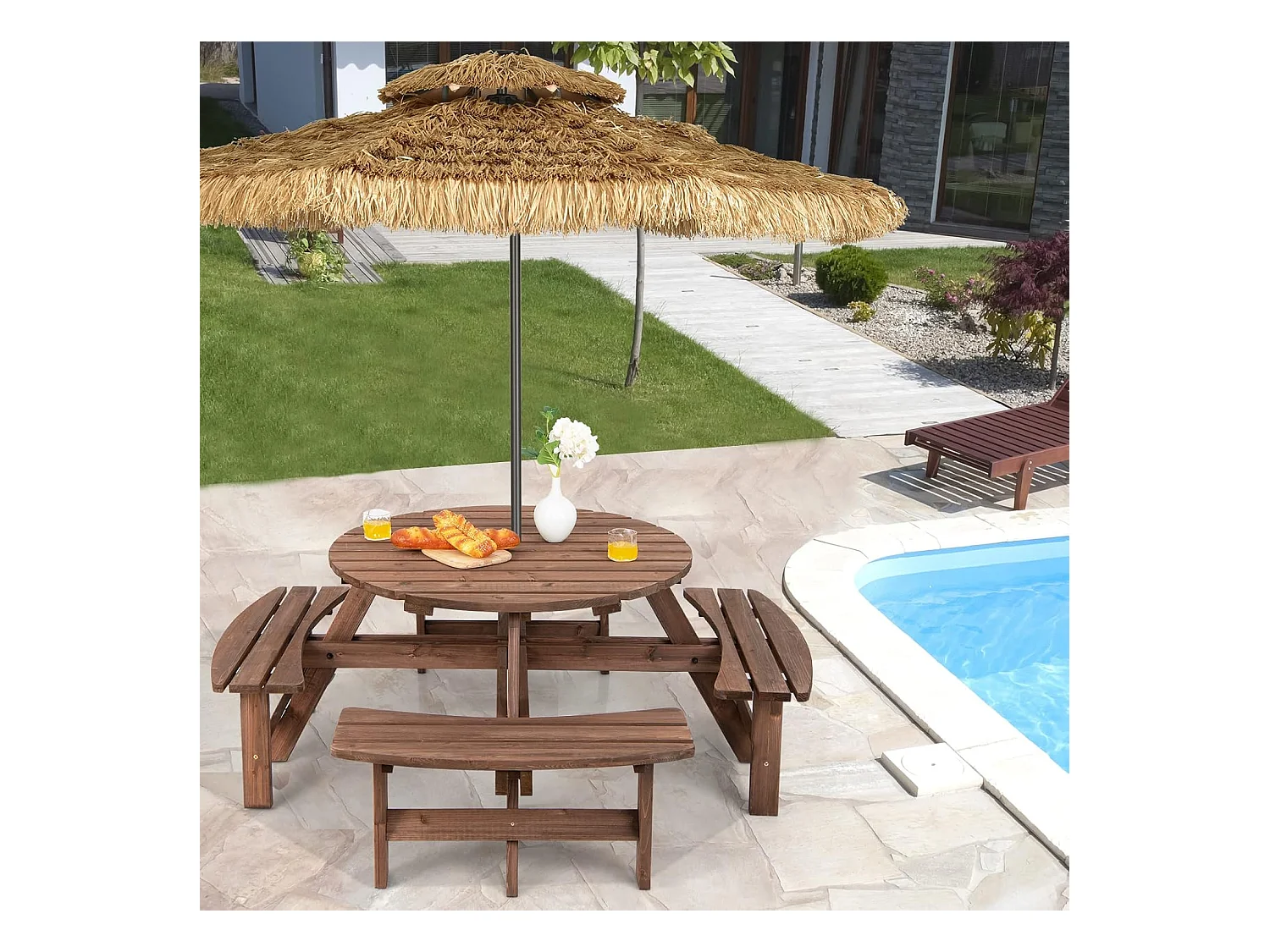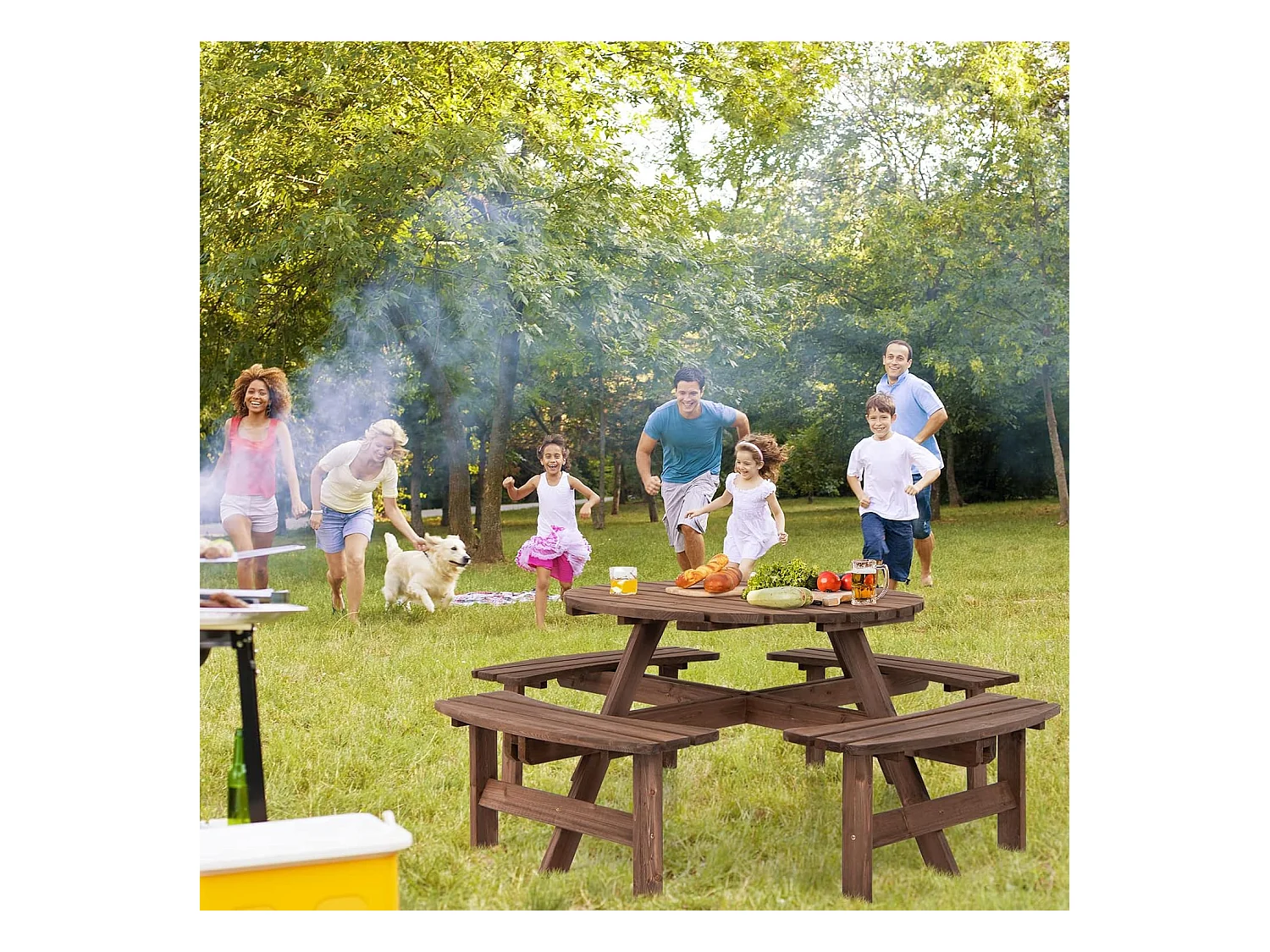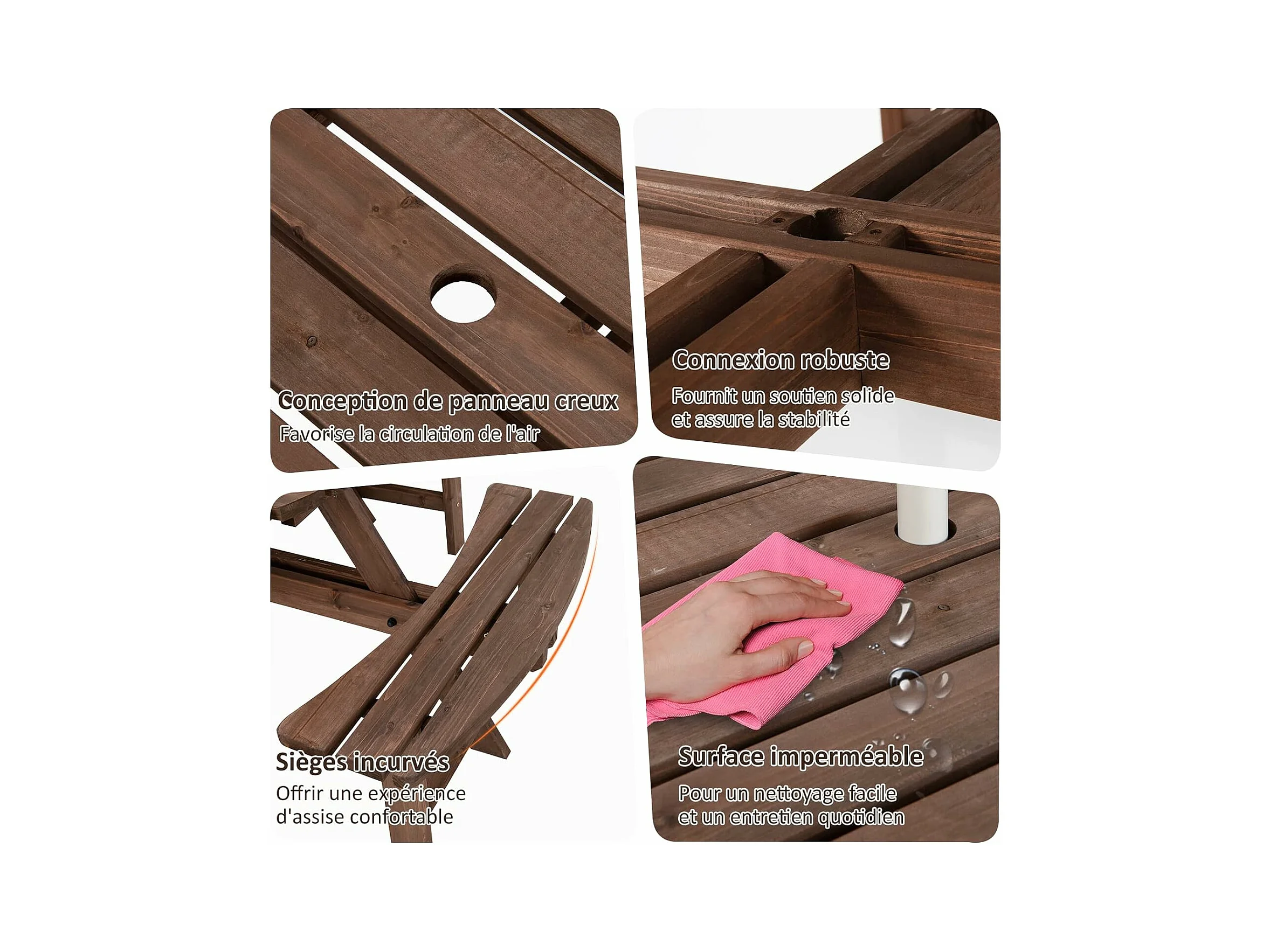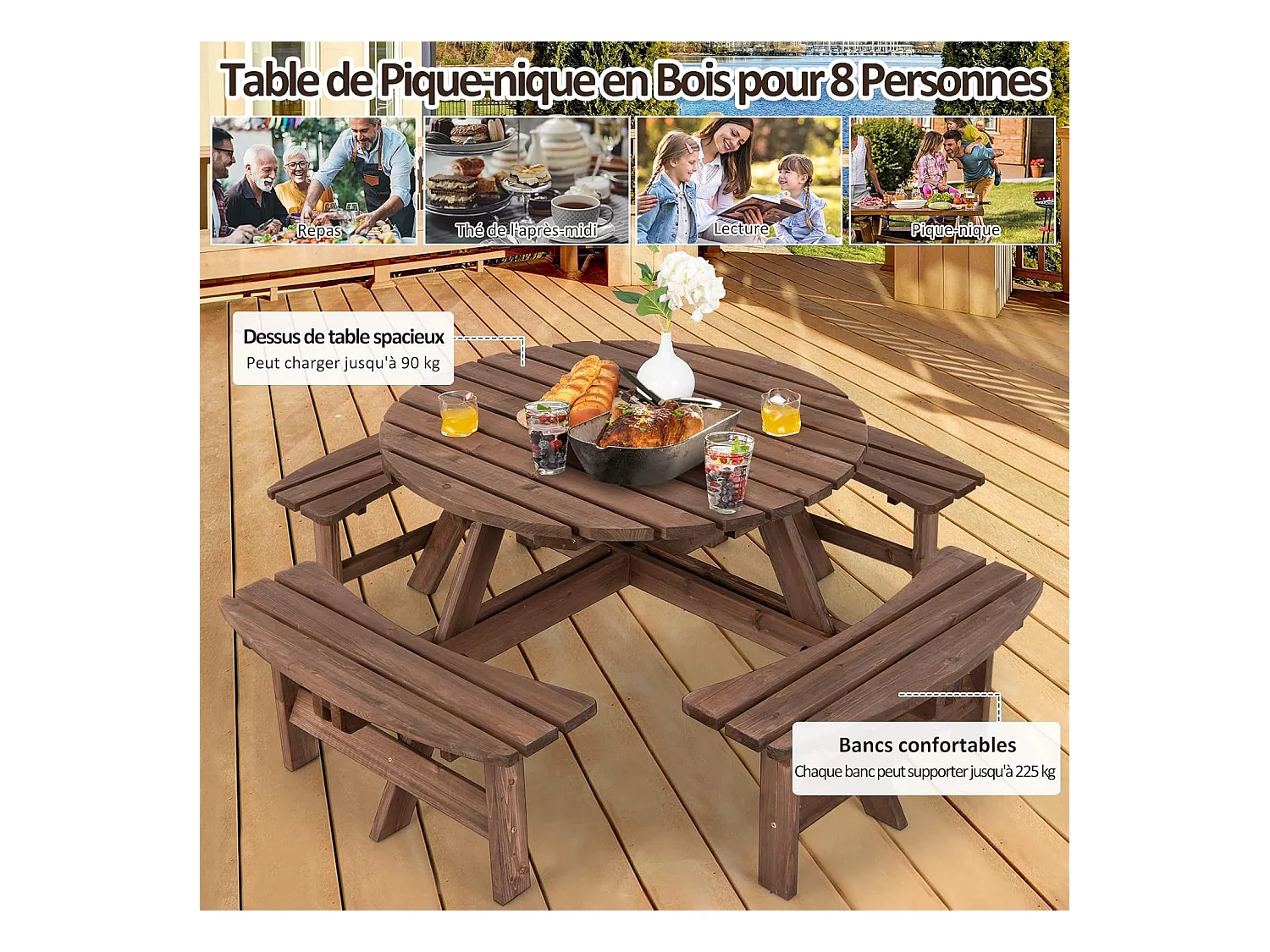 Ensemble Table de Pique-Nique en Bois avec Trou de Parasol, Set Table et Banc Jardin Résistant aux Intempéries Chaque Banc Charge 225 KG pour 8 Personnes, pour Patio Pelouse