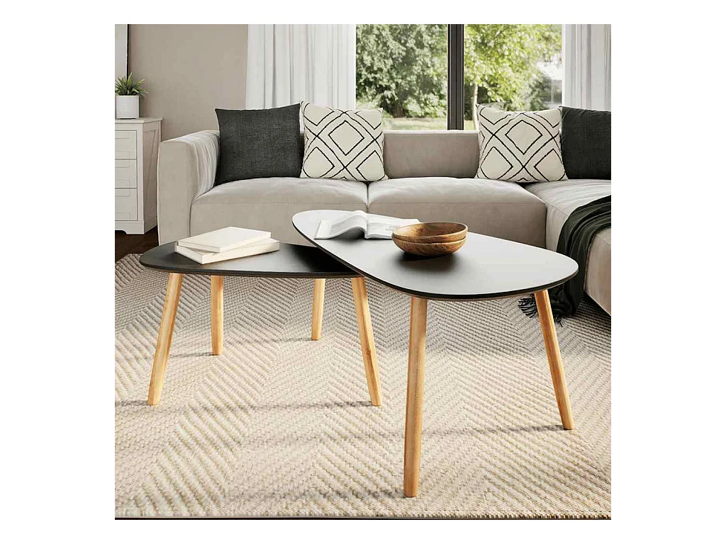 Tables basses gigognes 2 pcs noir bois d'ingénierie