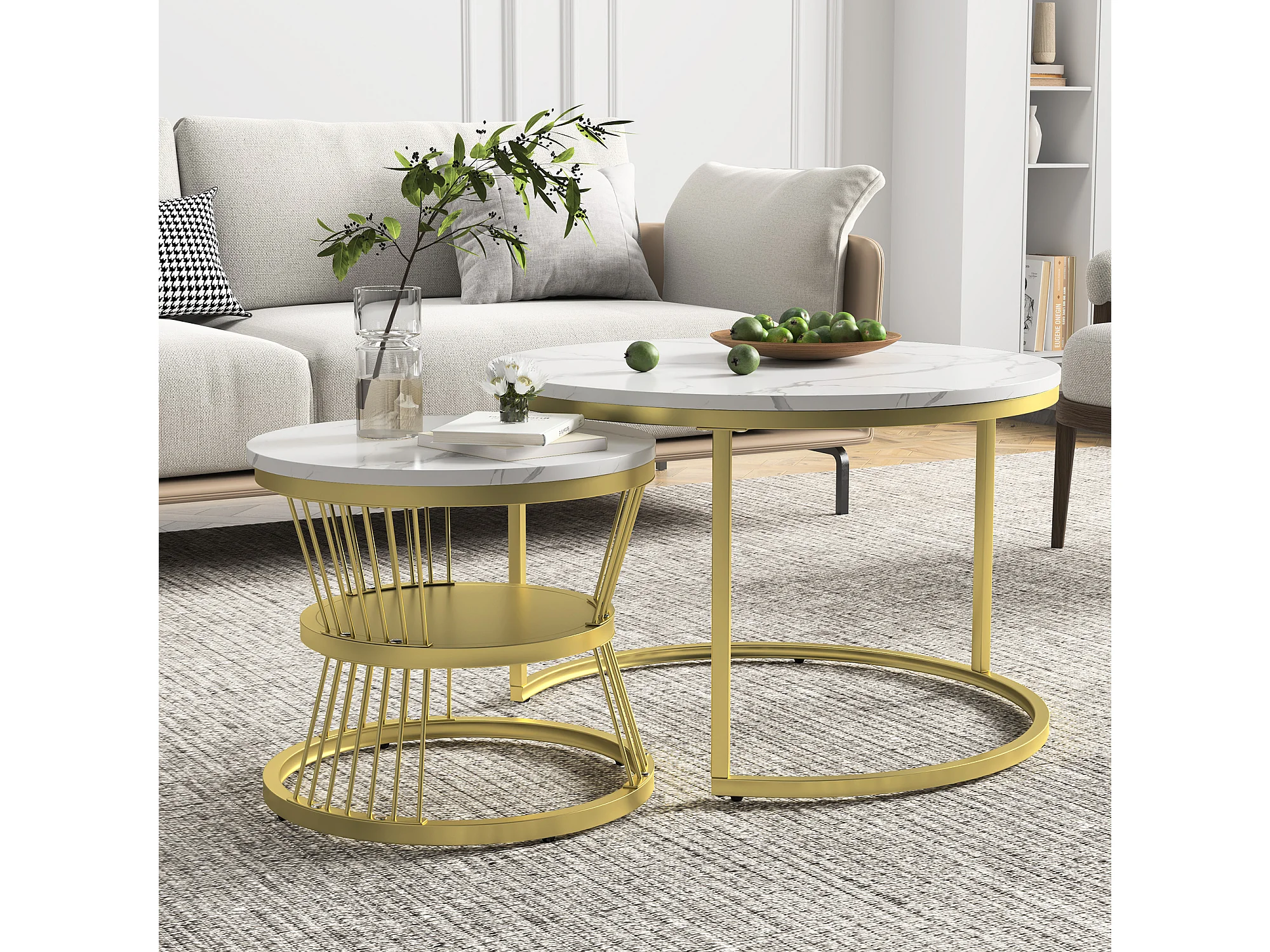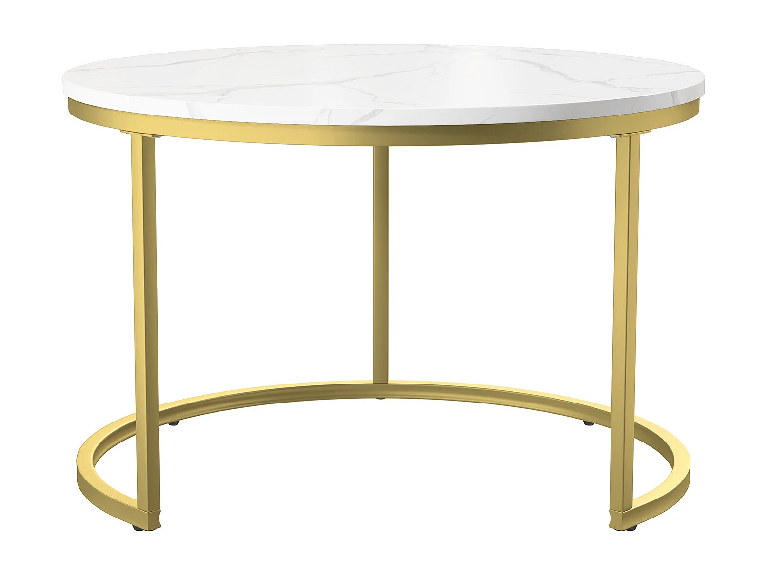 Ensemble De Tables Basses Empilables - Plateau Marbré Blanc - Cadre Métal Doré - Style Moderne Luxueux