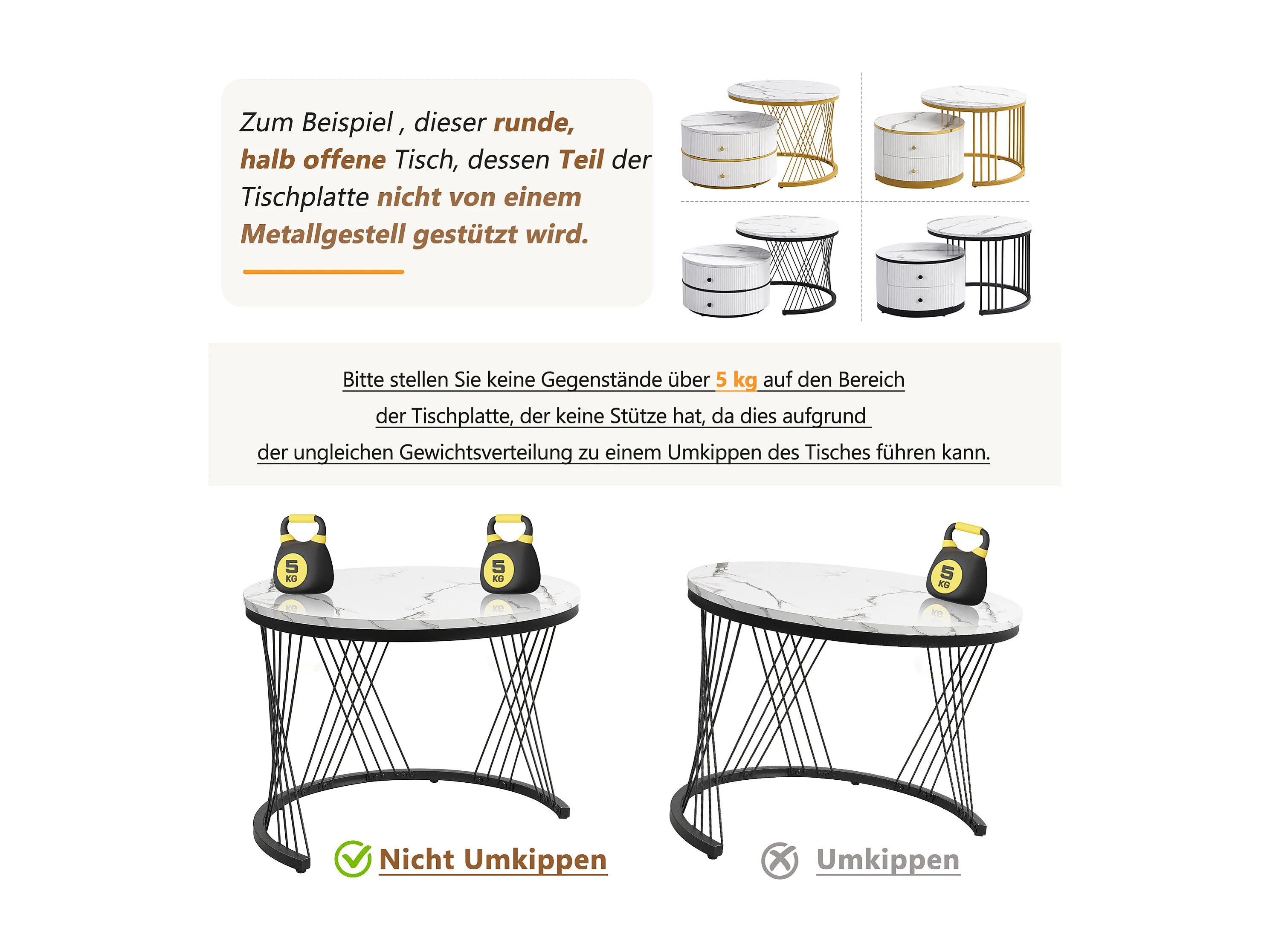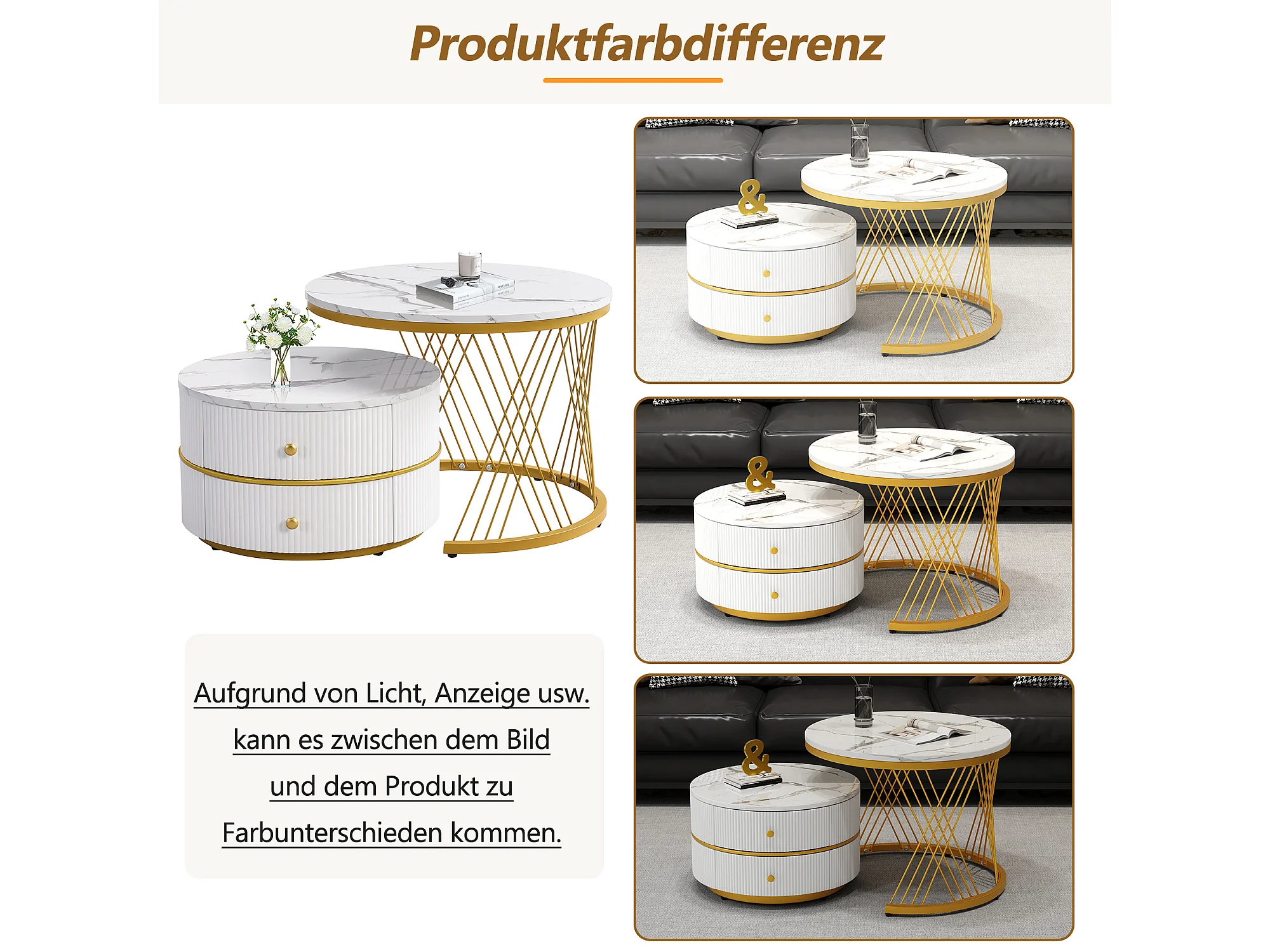 Ensemble de tables basses rondes modernes en nid d'abeille, 2 pièces, finition marbre haute brillance, avec 2 tiroirs,60*60*46cm & 50*50*30.8cm