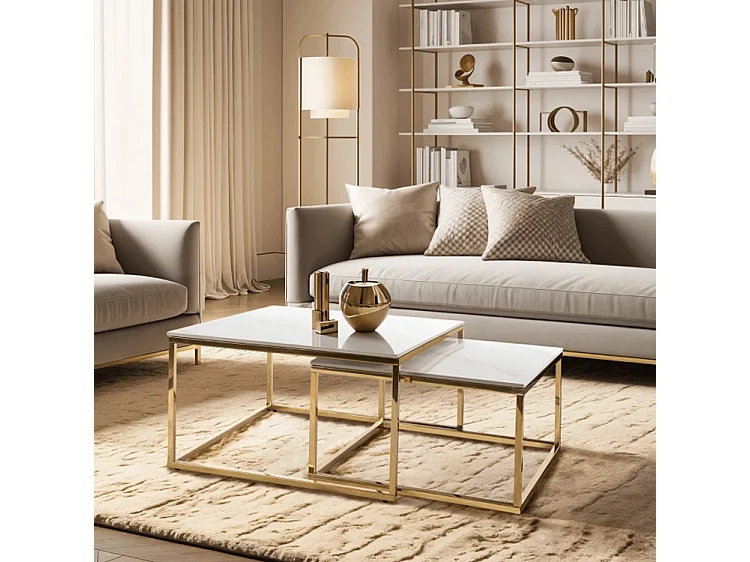 Ensemble de tables basses Tenor Marbre Blanc / Doré