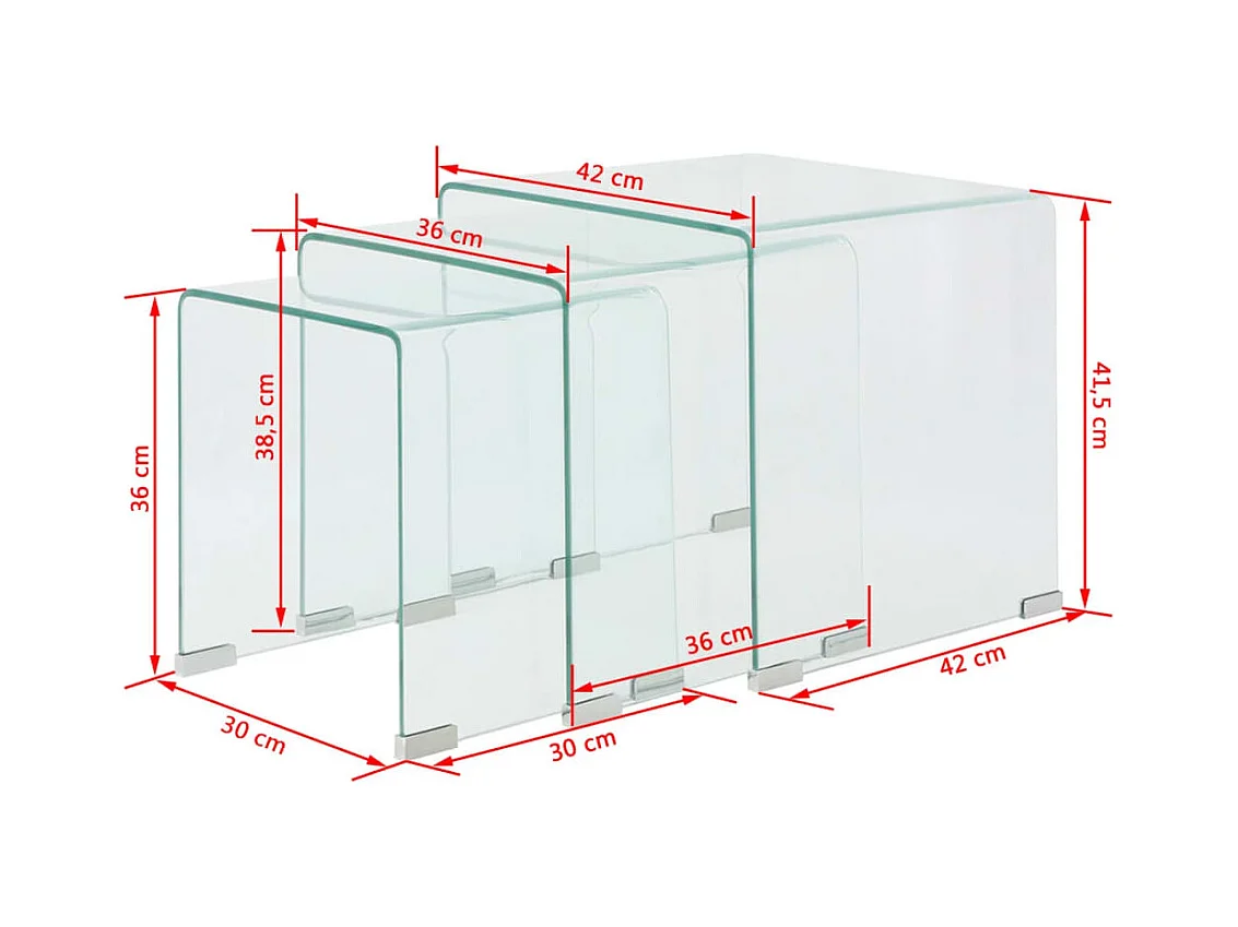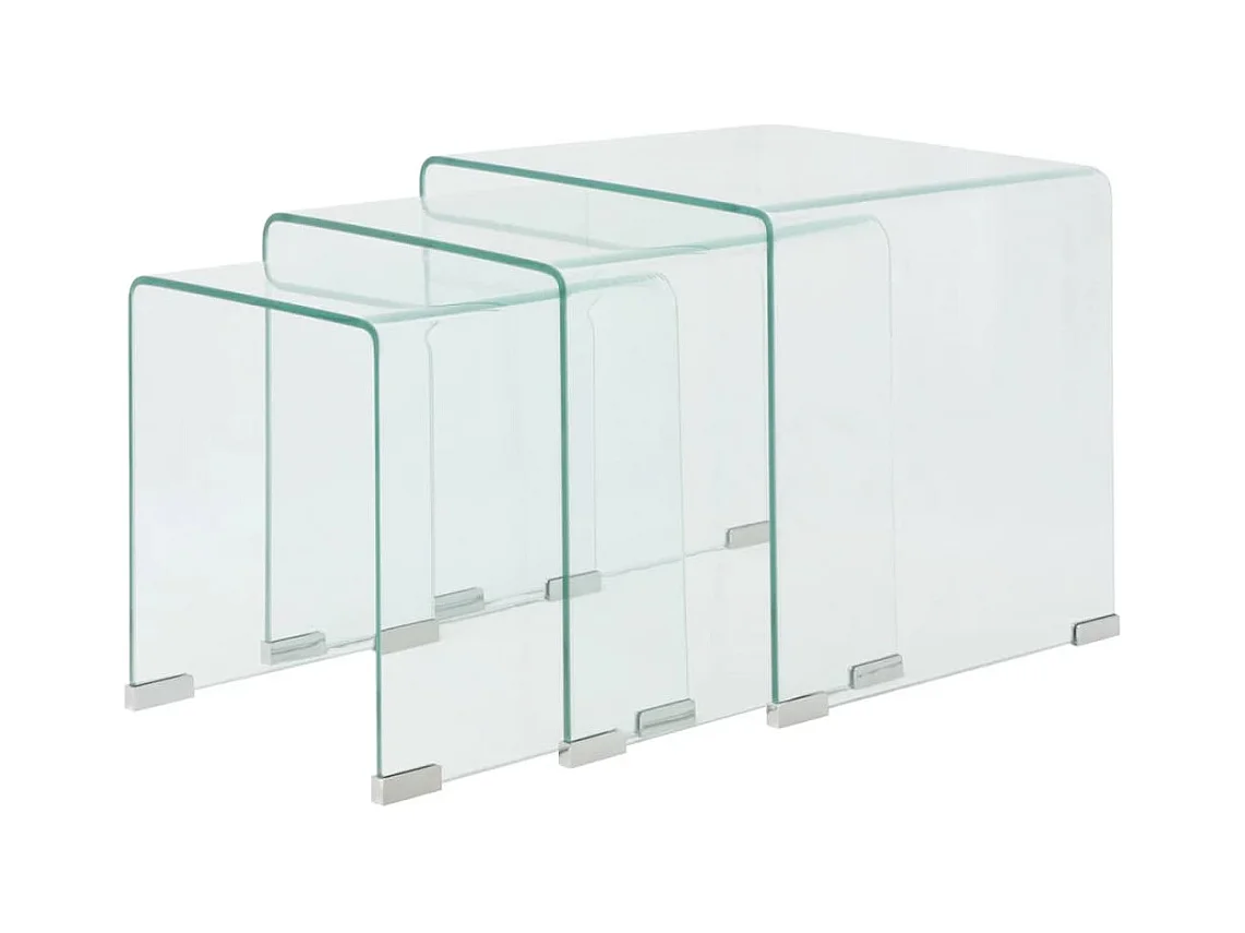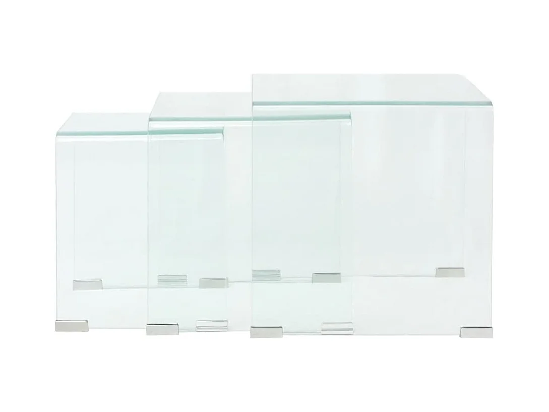 Ensemble de tables gigognes 3 Pièces Verre trempé Transparent