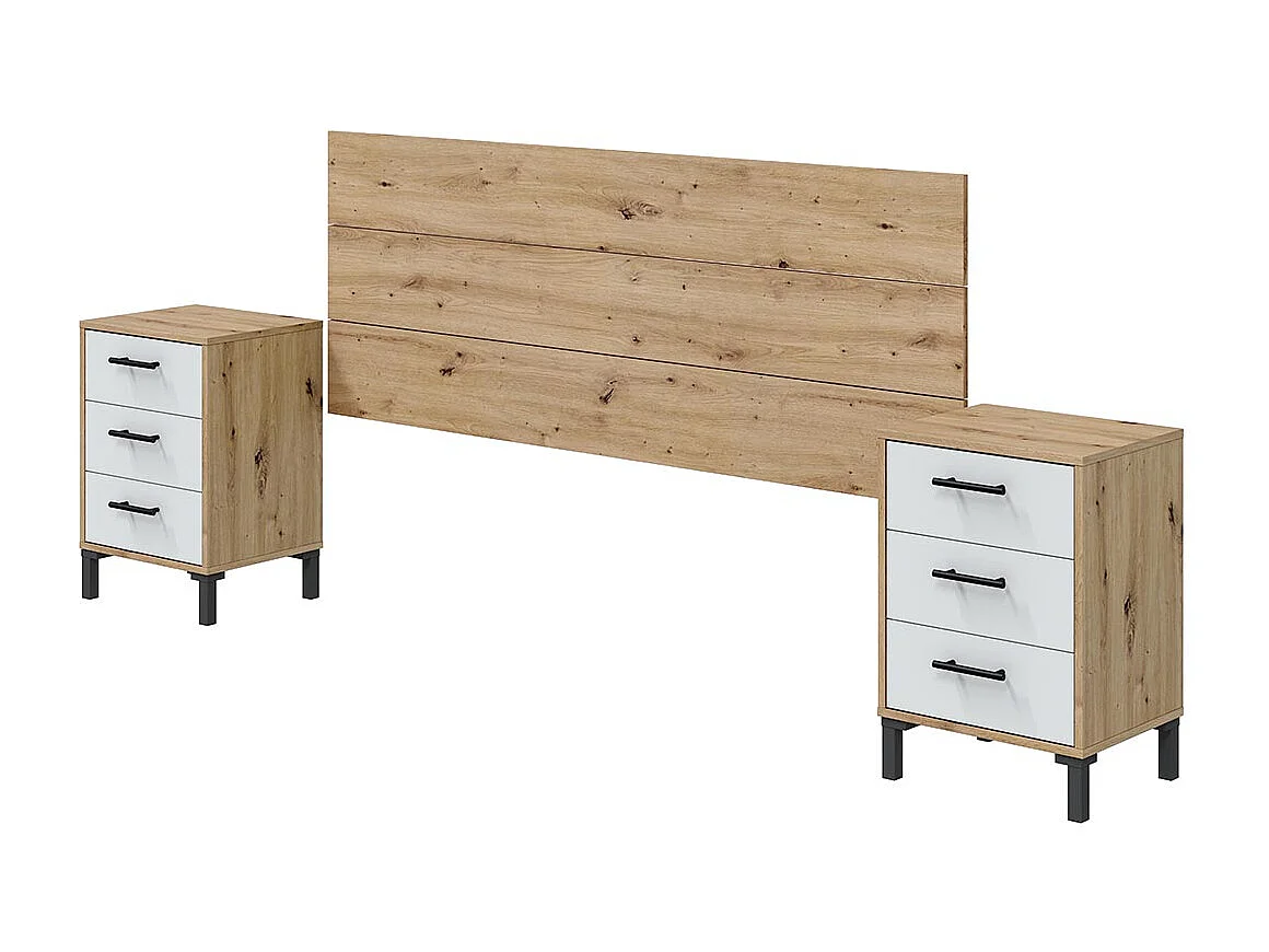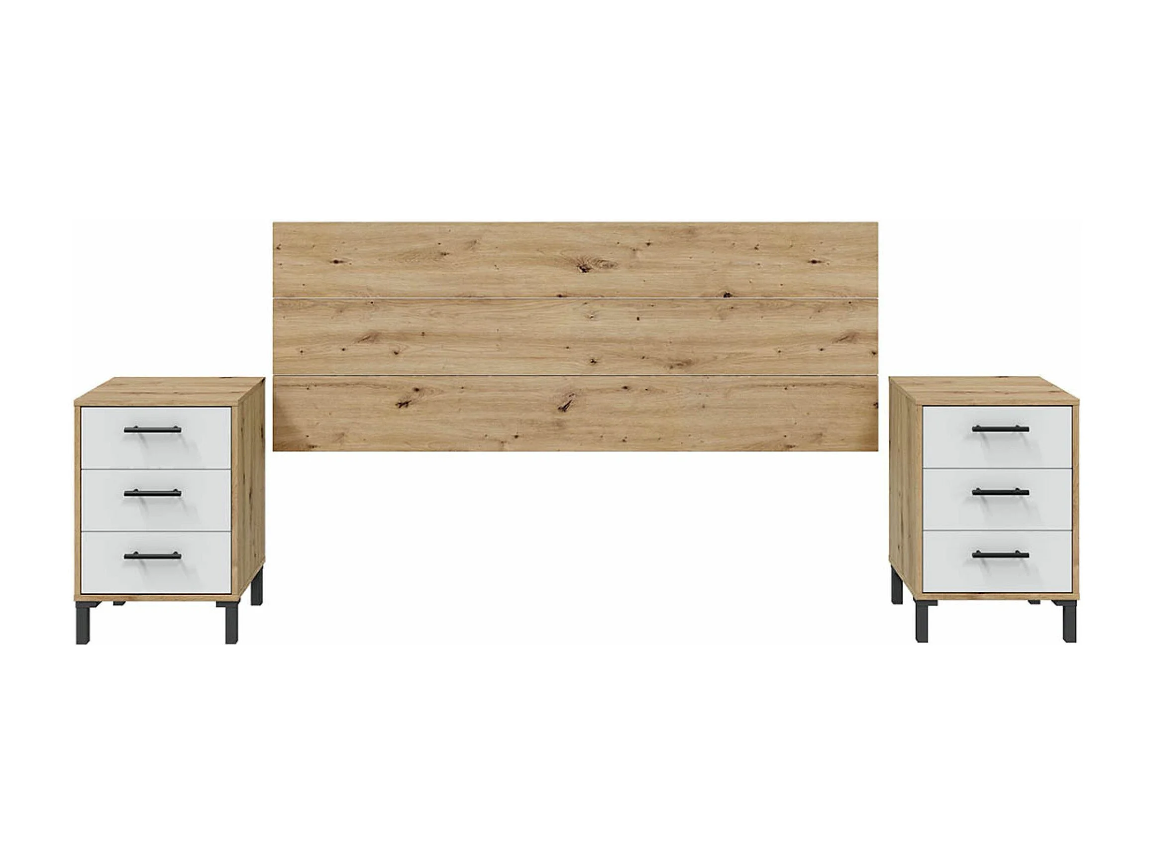 Ensemble de tête de lit + 2 tables de chevet coloris blanc artic, chêne nordique