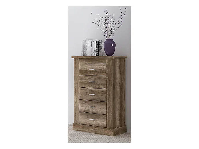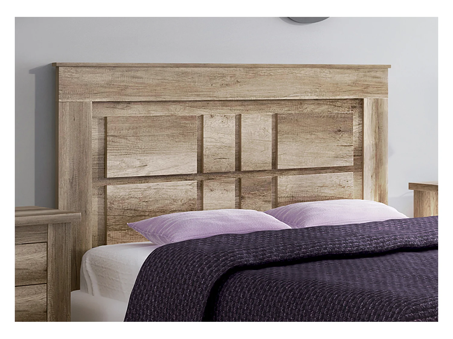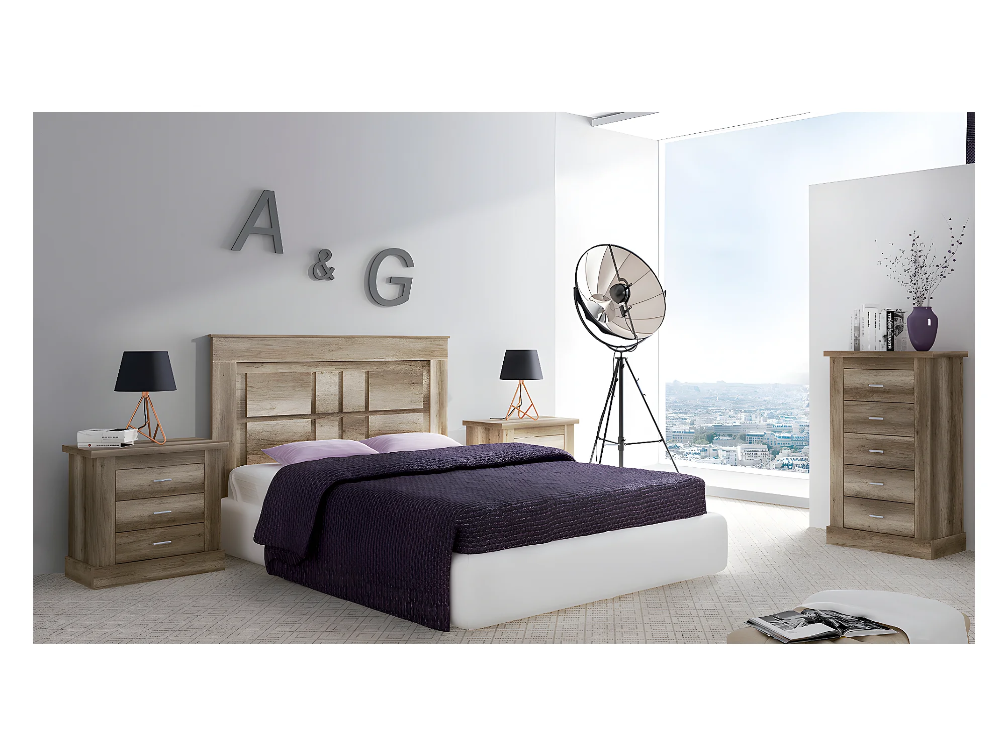 Ensemble de tête de lit avec pieds + 2 tables de chevet + chiffonnier coloris chêne vieilli