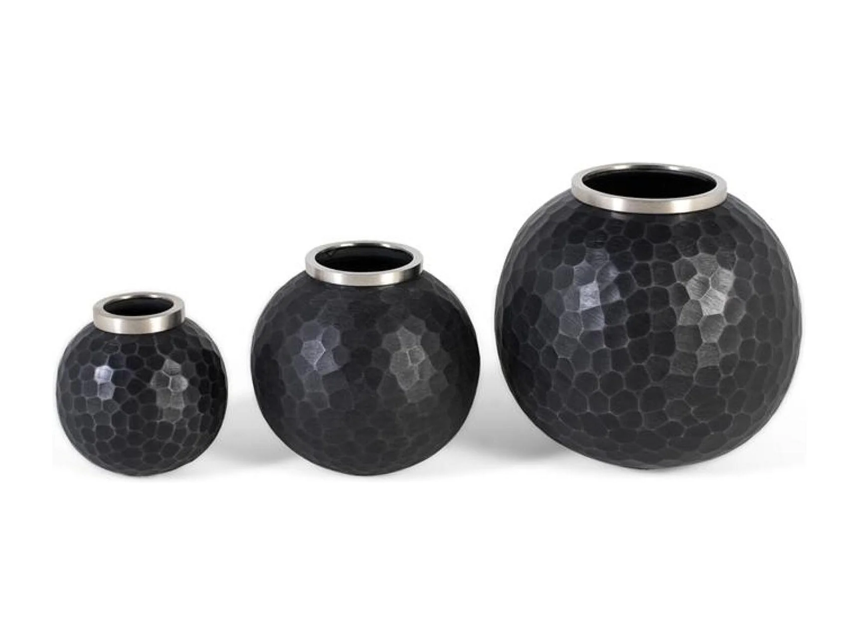 Ensemble de trois vases en métal gris foncé