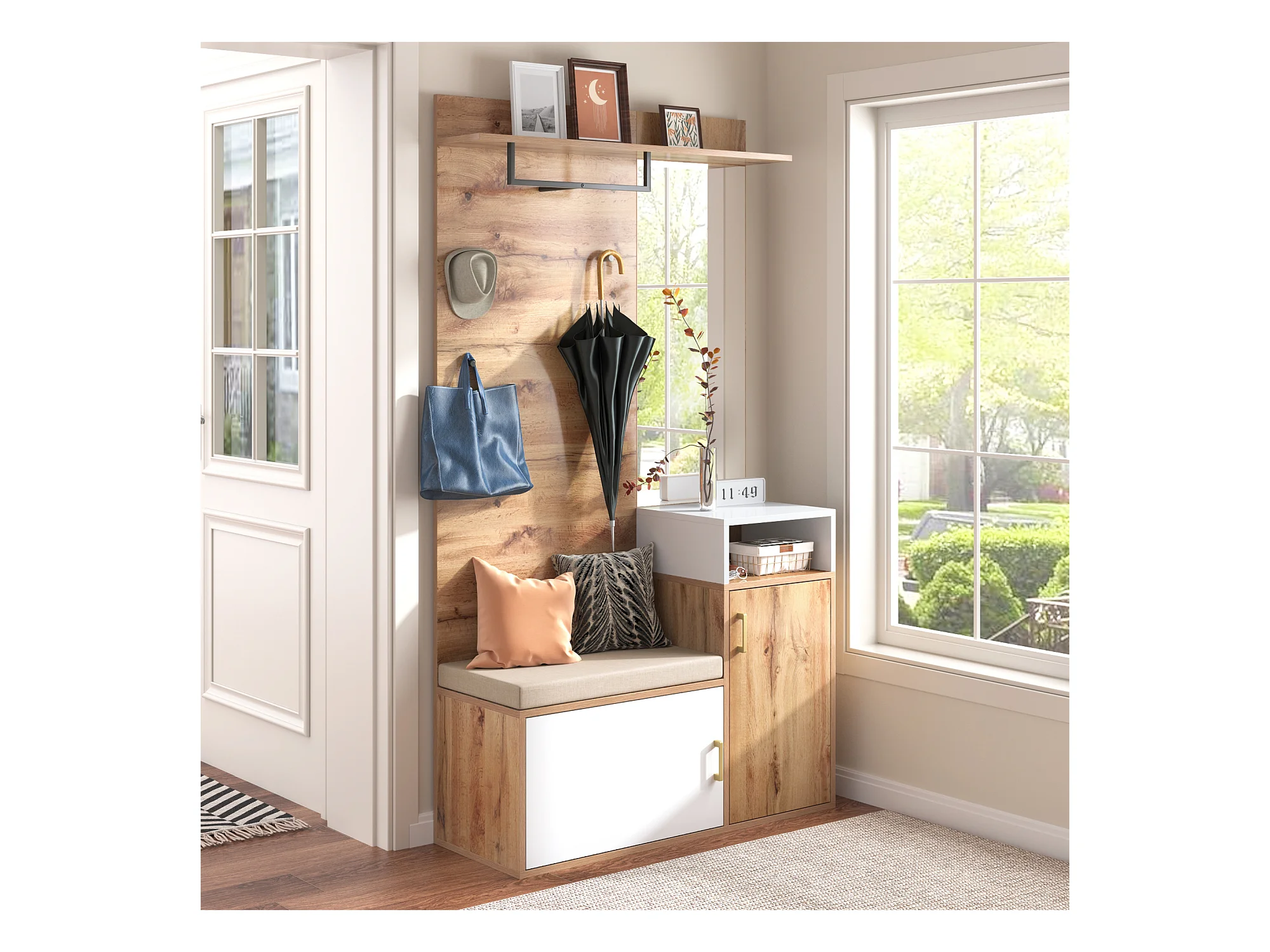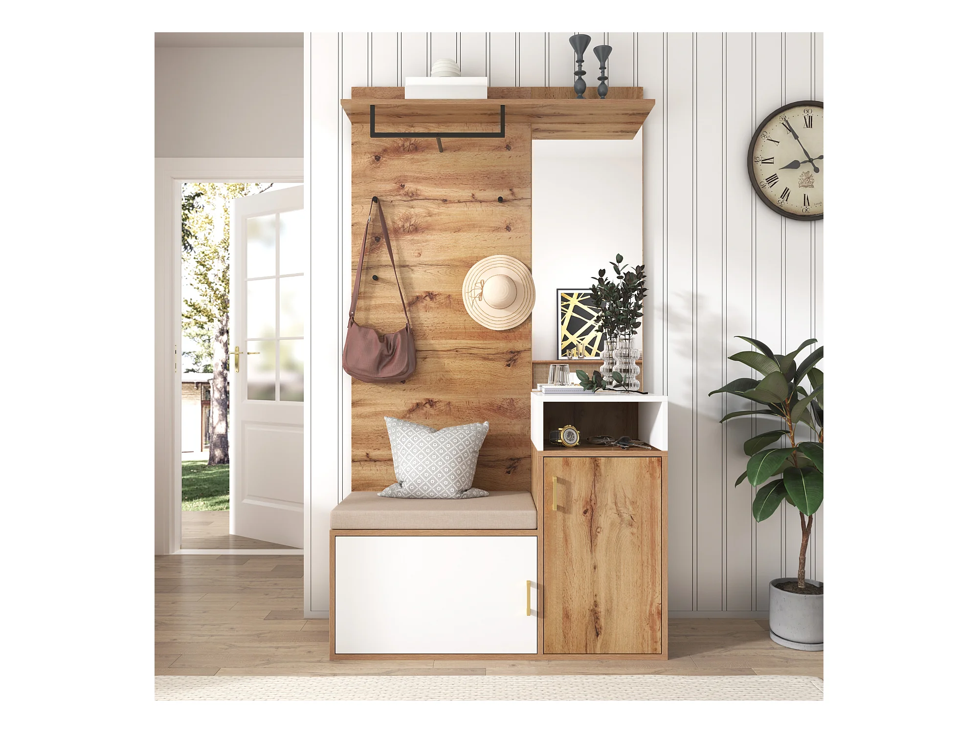 Ensemble de vestiaire avec miroir, banc et rangement à chaussures, design scandinave, MDF et panneau de particules, (105x40x190.5 cm)