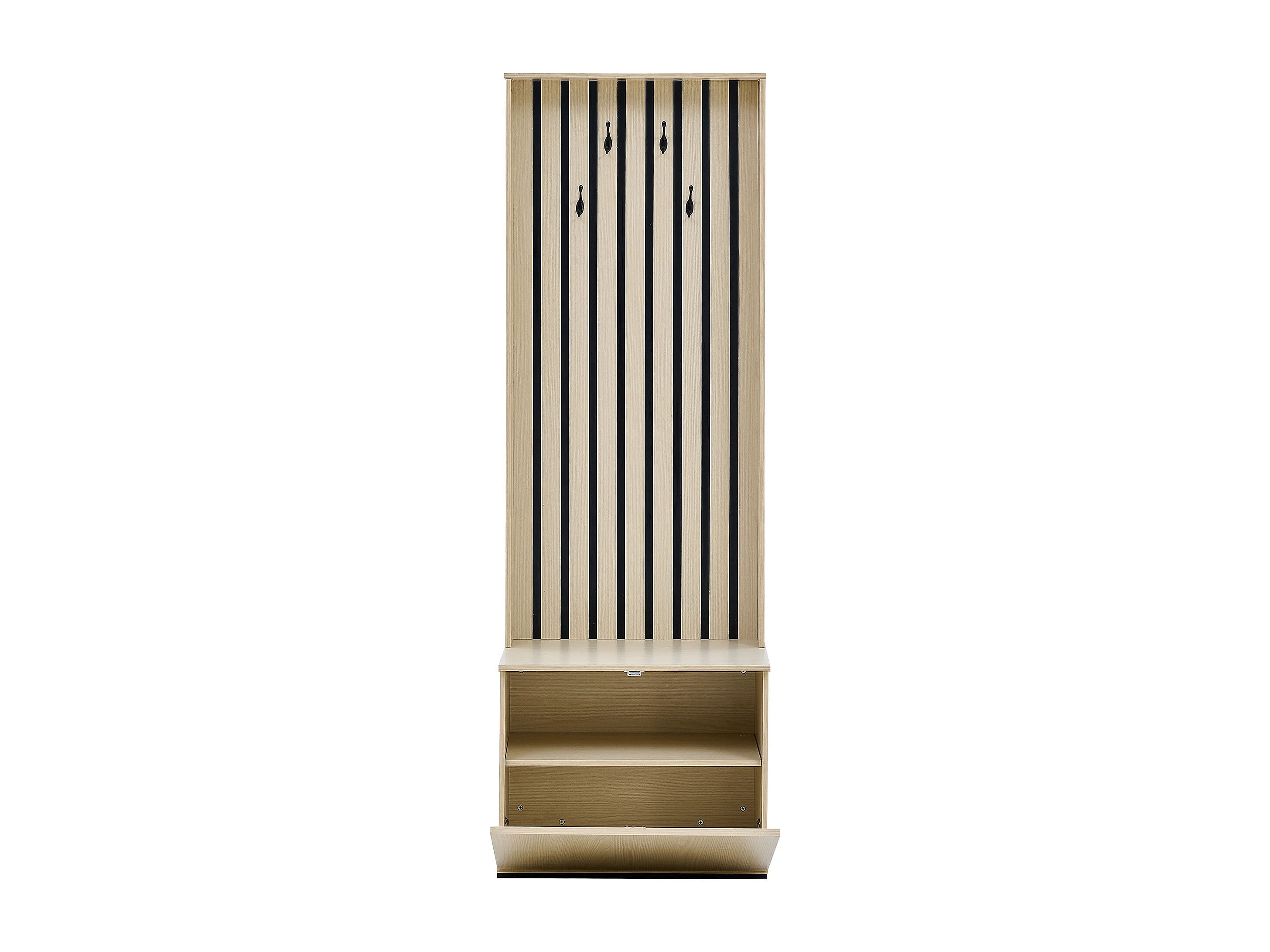 Ensemble de vestiaire et armoire - Avec 3 porte, miroir, 4 crochets et banc rembourré -Naturel