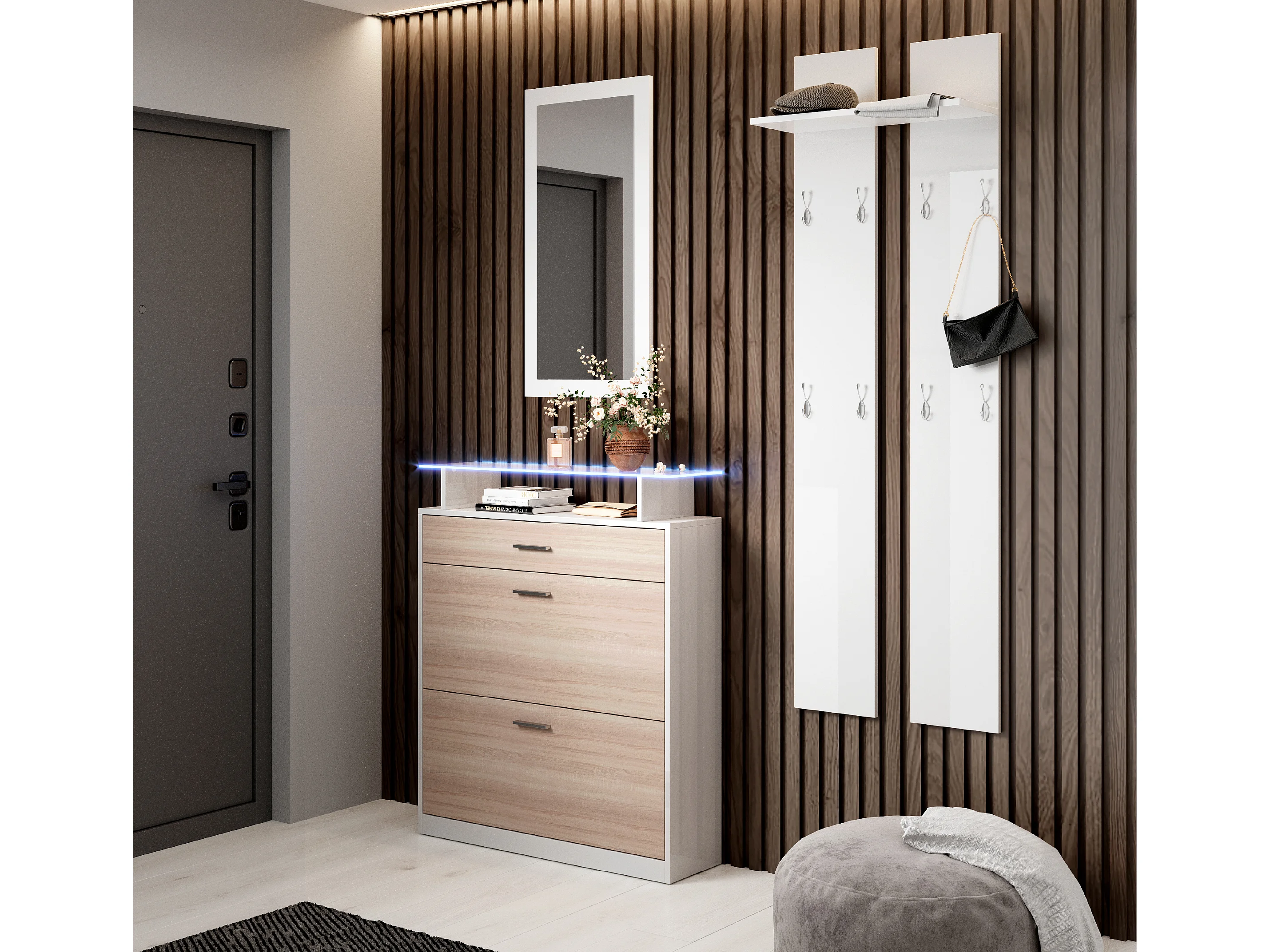 Ensemble d'entrée en Blanc et Sonoma avec LED 105x24x89cm Paola