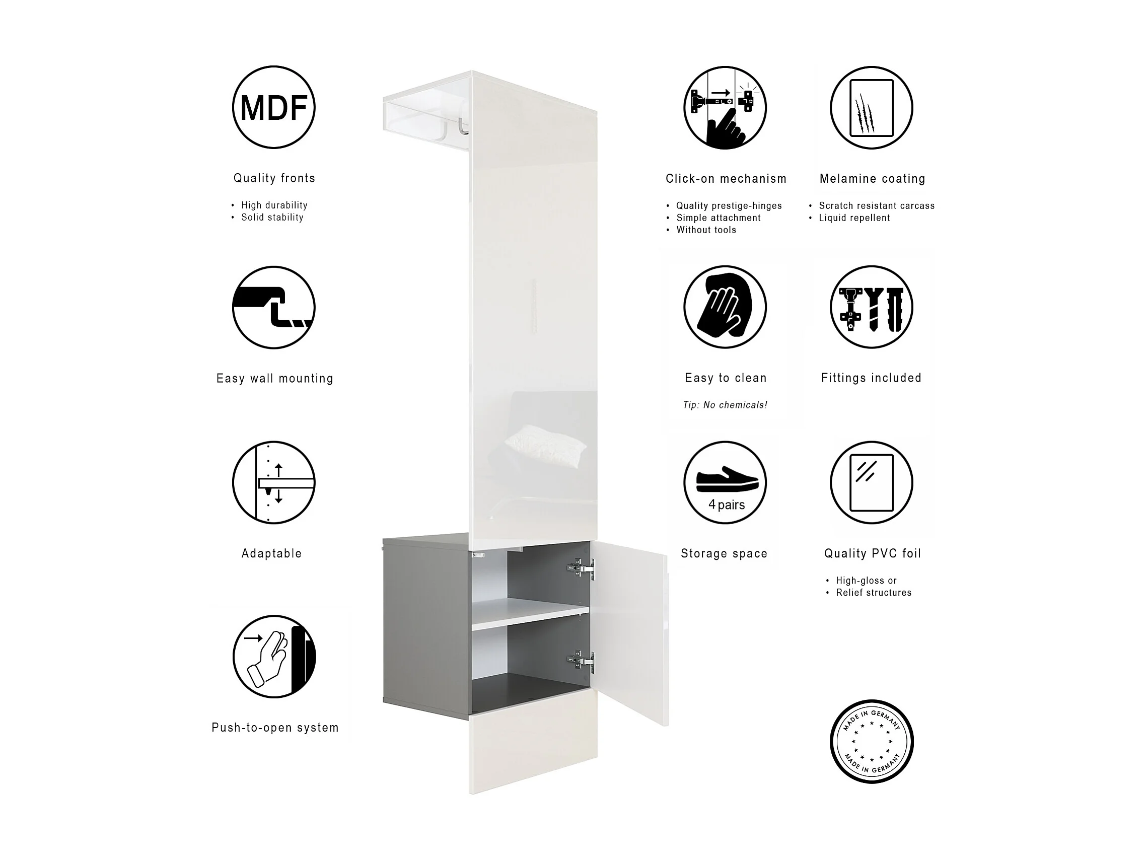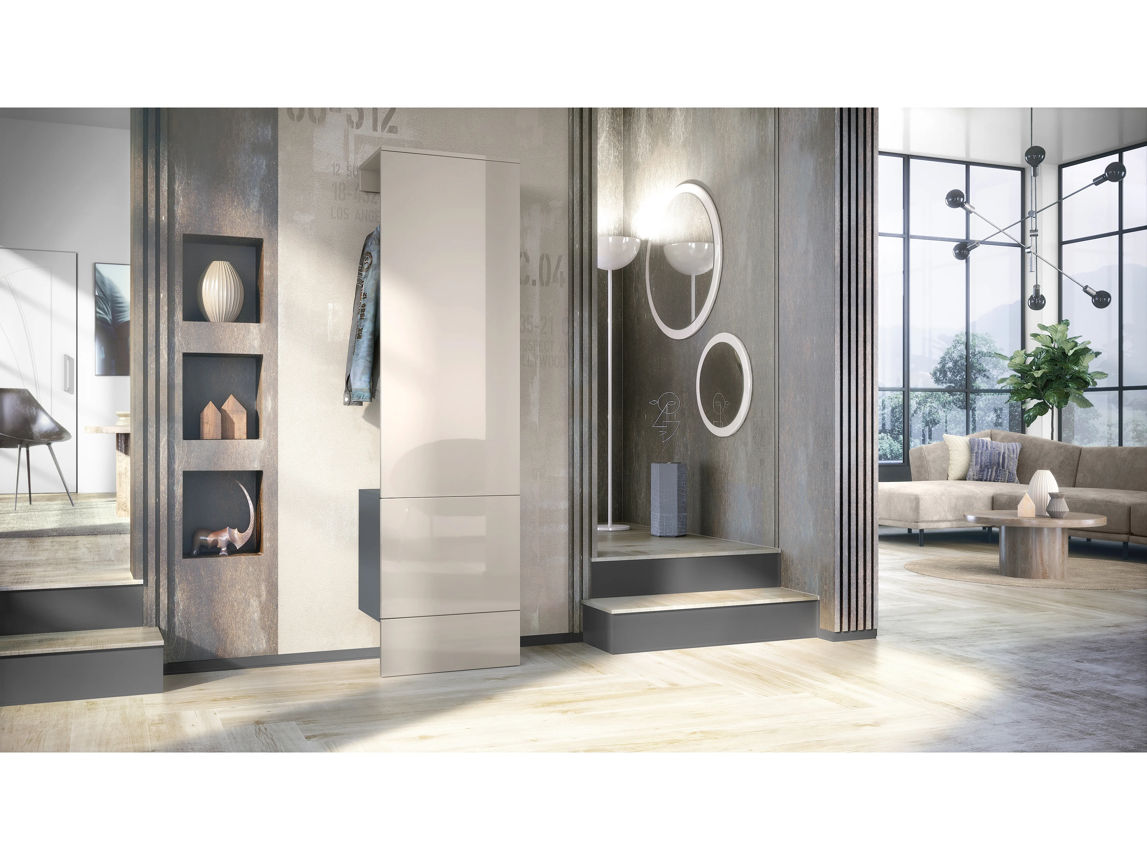 Ensemble d'entrée Hollywood, comprenant 1 panneau de vestiaire mural, 1 tringle à vêtements et 1 ensemble de panneaux muraux, anthracite mat/gris sable brillant