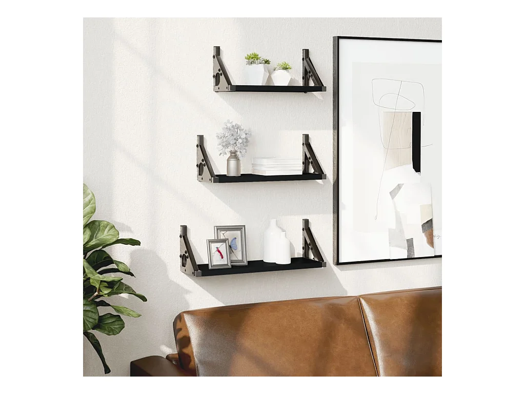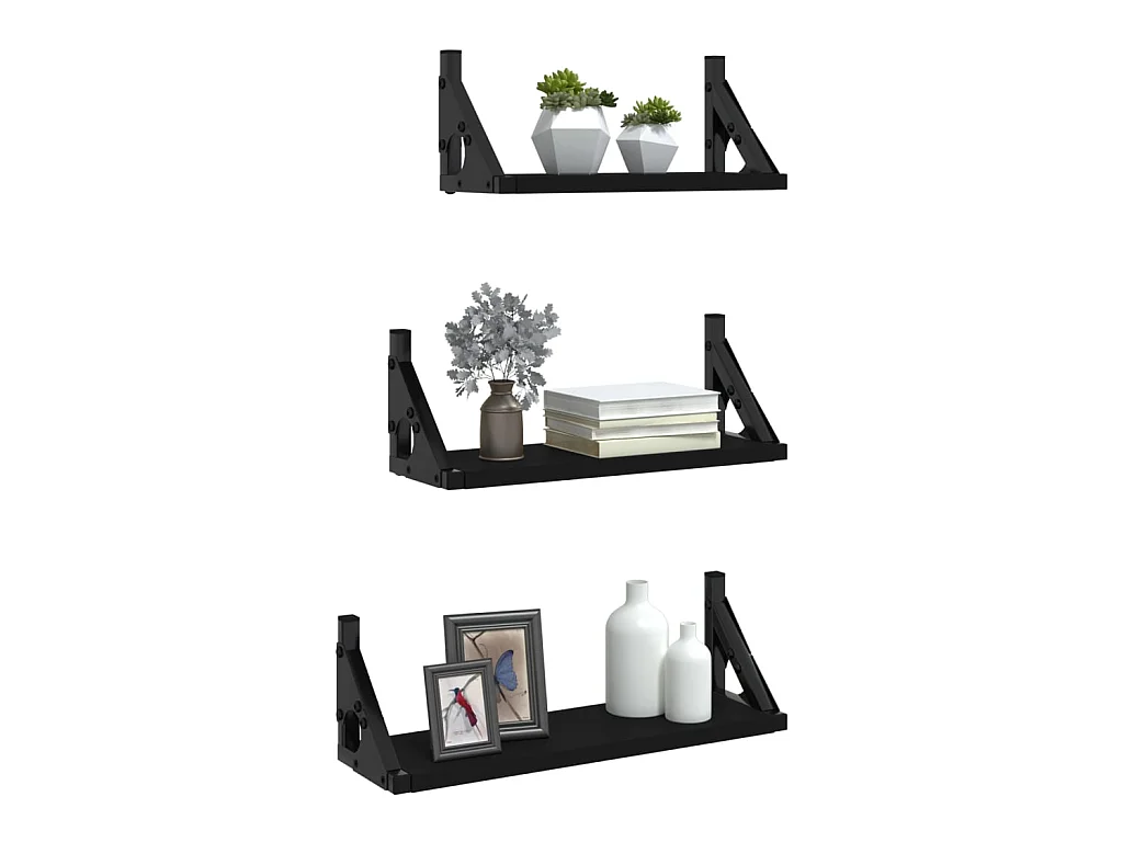 Ensemble d'étagères murales 3 pcs noir bois d'ingénierie OFR17770 BonneVie Meuble