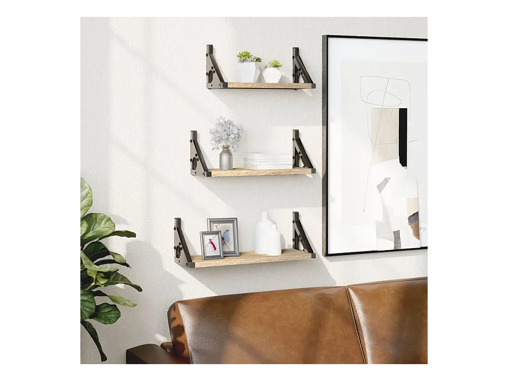 Ensemble d'étagères murales 3pcs chêne sonoma bois d'ingénierie