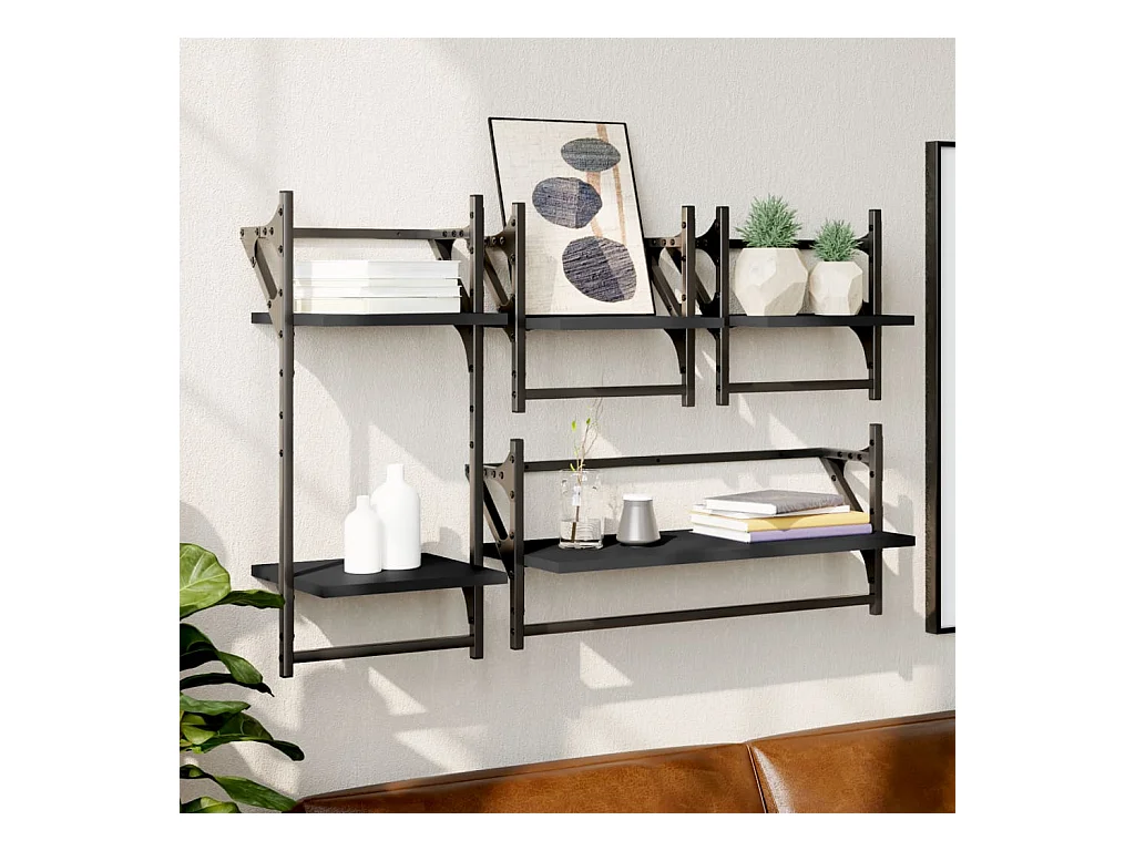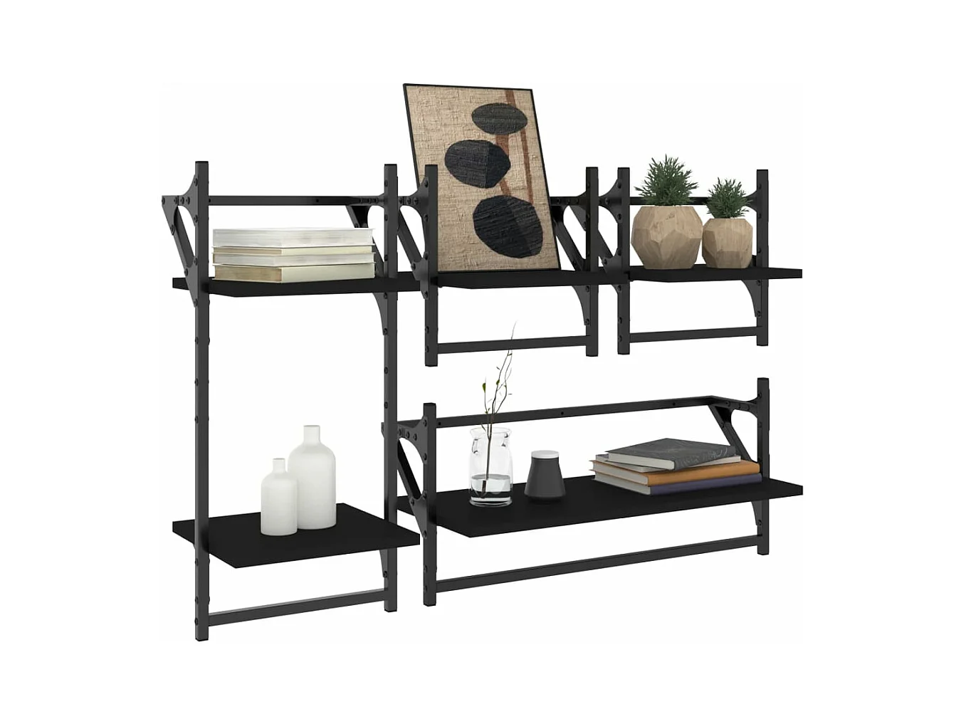 Ensemble d'étagères murales barres 4 pcs noir bois d'ingénierie OFR80156 BonneVie Meuble