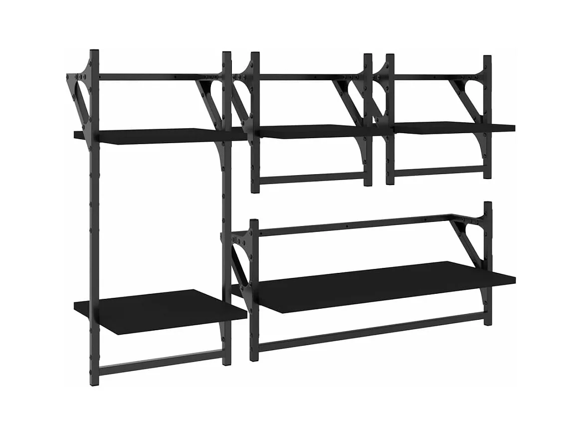 Ensemble d'étagères murales barres 4 pcs noir bois d'ingénierie