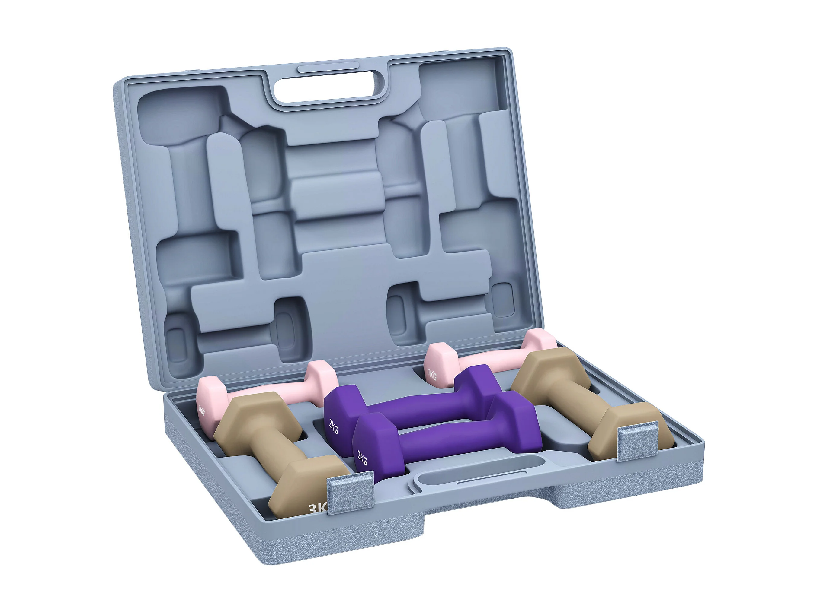 Ensemble d'haltères hexagonales total 12 Kg 6 pièces 1-3 Kg avec mallette multicolore