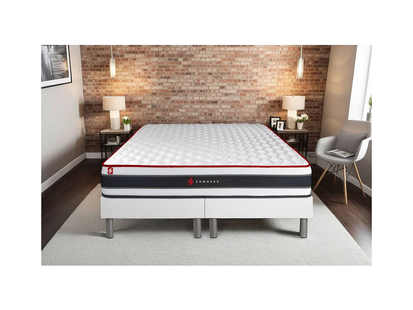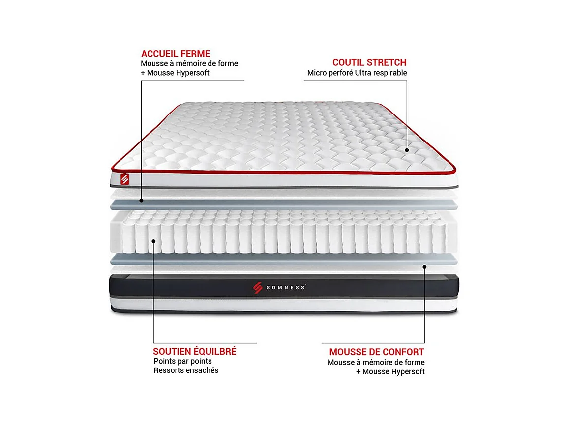 Ensemble double sommier + matelas ENERGY ressorts ensachés et mémoire de forme 200x200