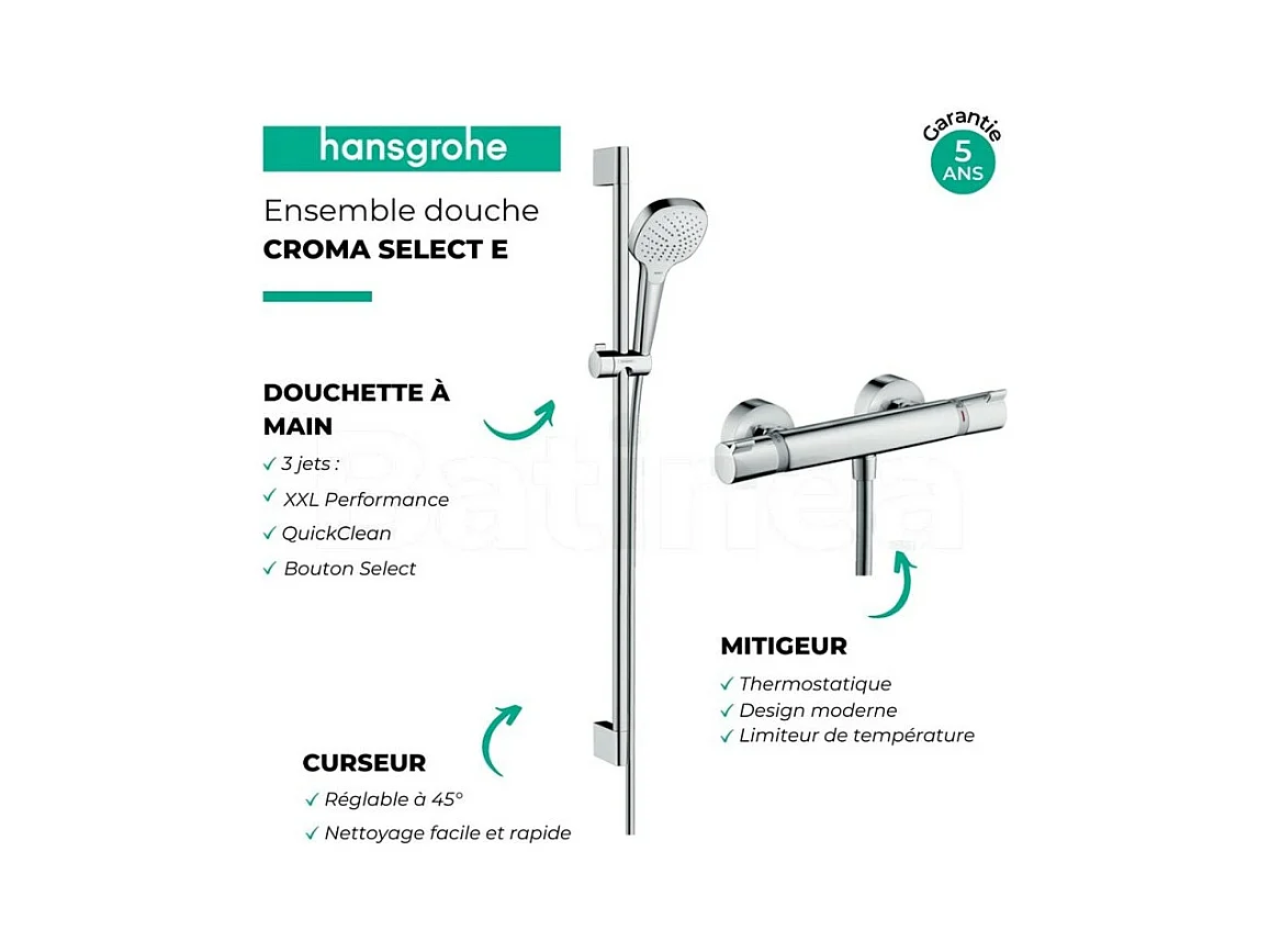 Mitigeur thermostatique avec ensemble douche Hansgrohe Croma Select E