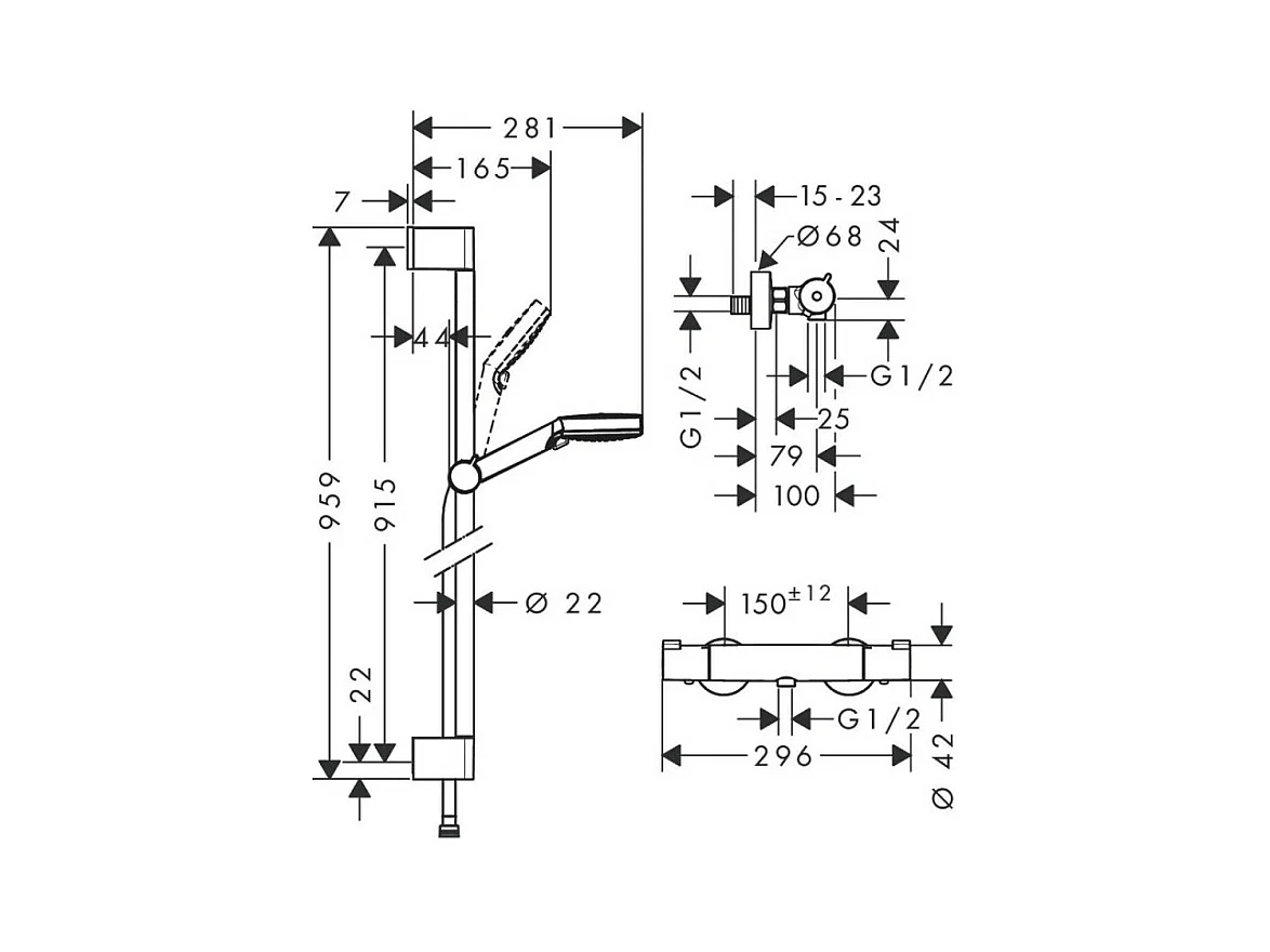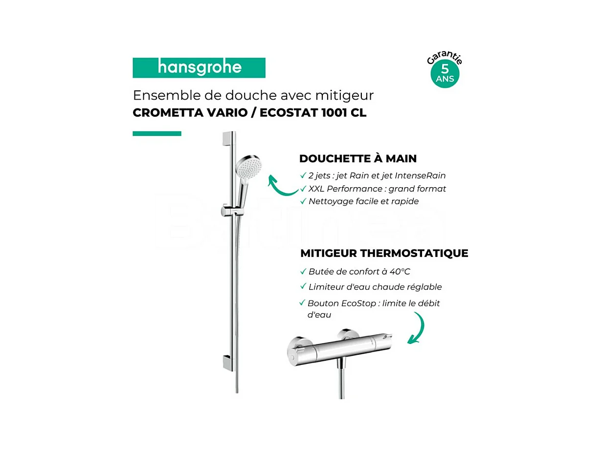 Ensemble douche Hansgrohe Crometta Vario avec mitigeur thermostatique Ecostat 1001 CL