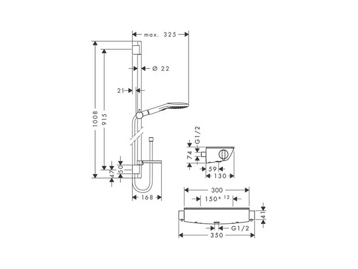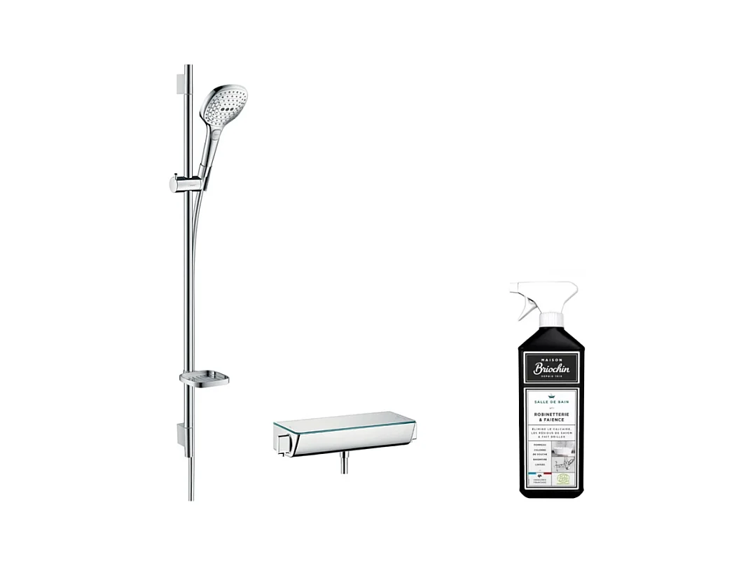 Ensemble douche HANSGROHE Raindance Select E 120 3 jets + mitigeur thermostatique Ecostat Select + Barre 90 cm + nettoyant
