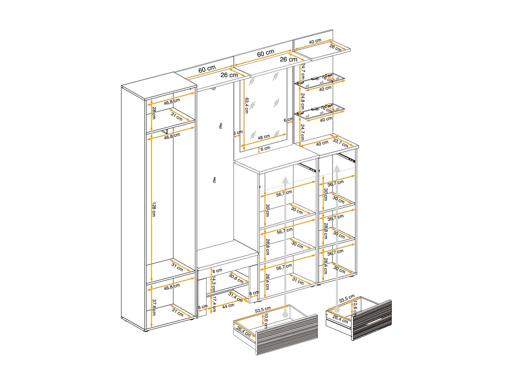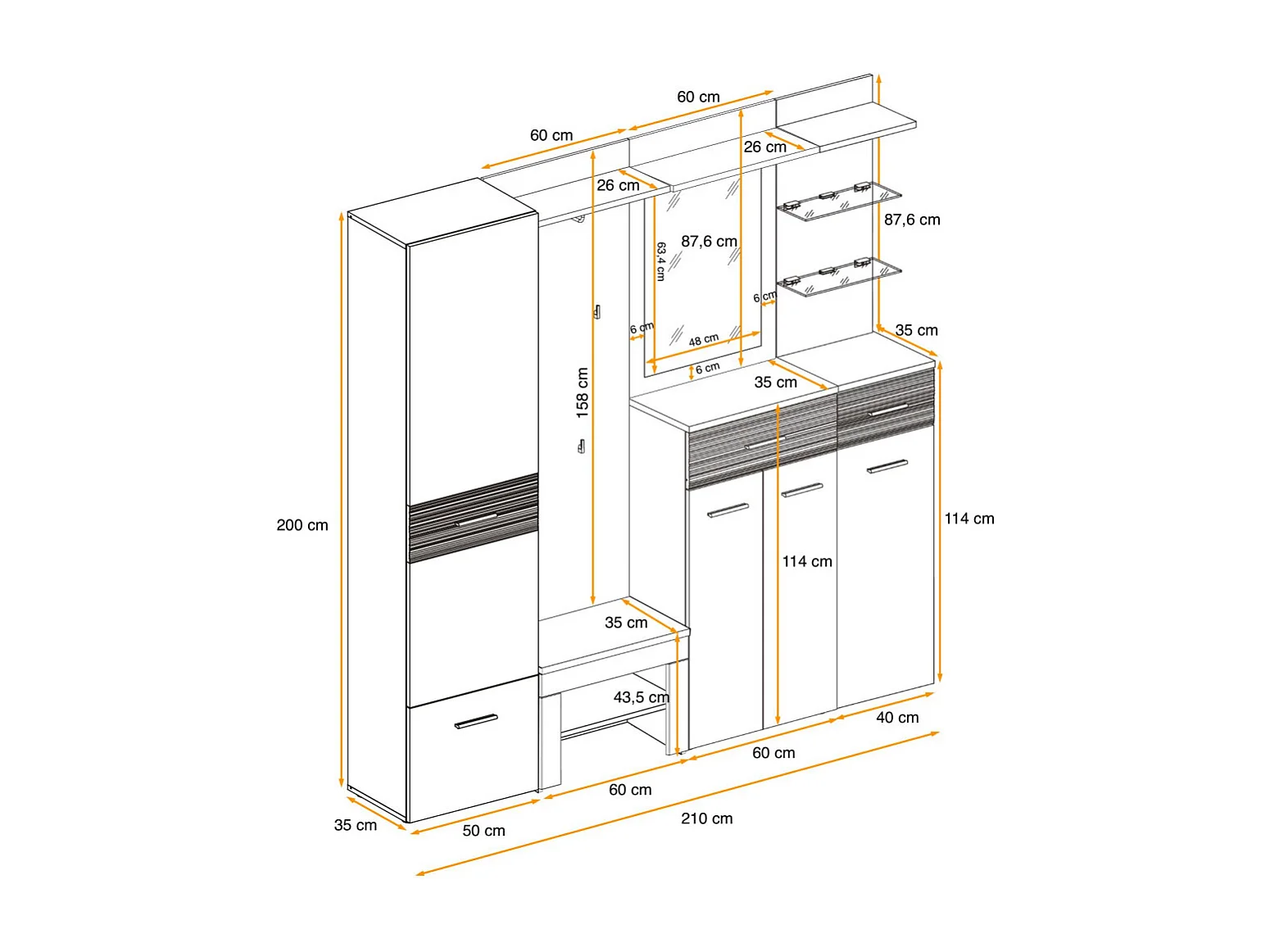 Ensemble Dressing "Gustavo IX" 210cm Naturel & Blanc