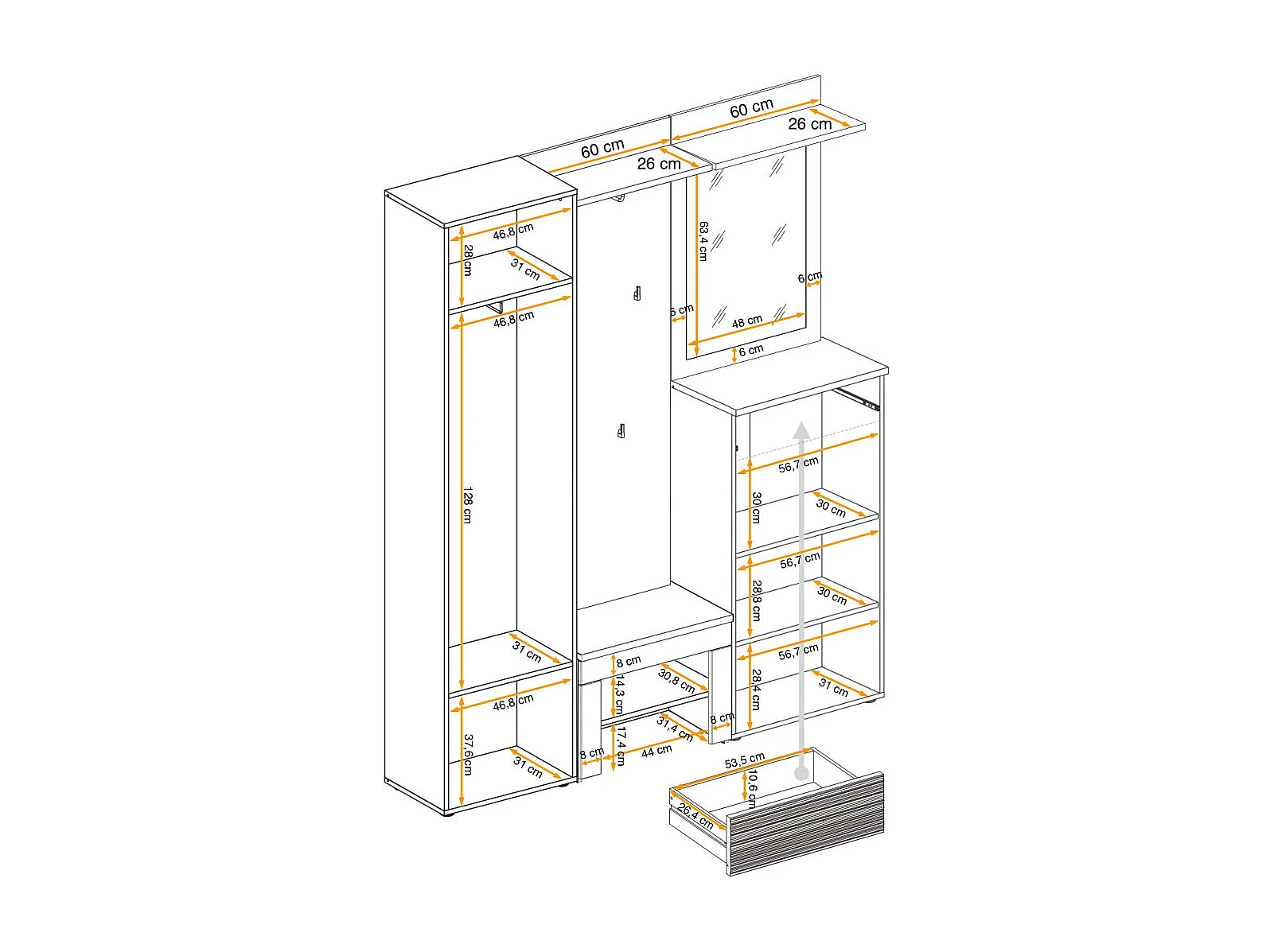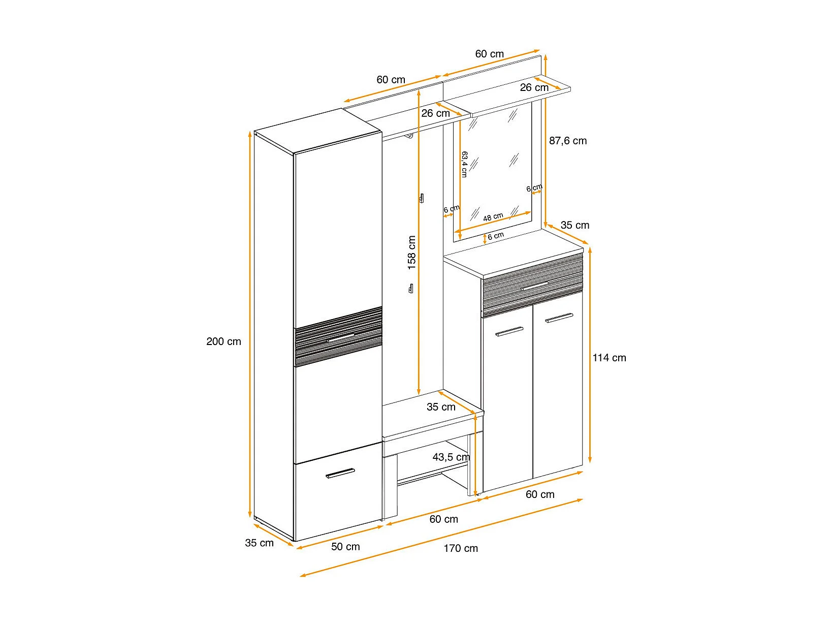 Ensemble Dressing "Gustavo VI" 200cm Naturel & Blanc