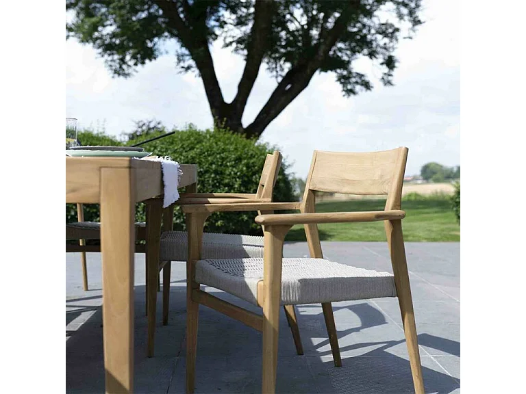Ensemble en teck massif et cordage Beige 6/8 places avec 6 fauteuils CALVI