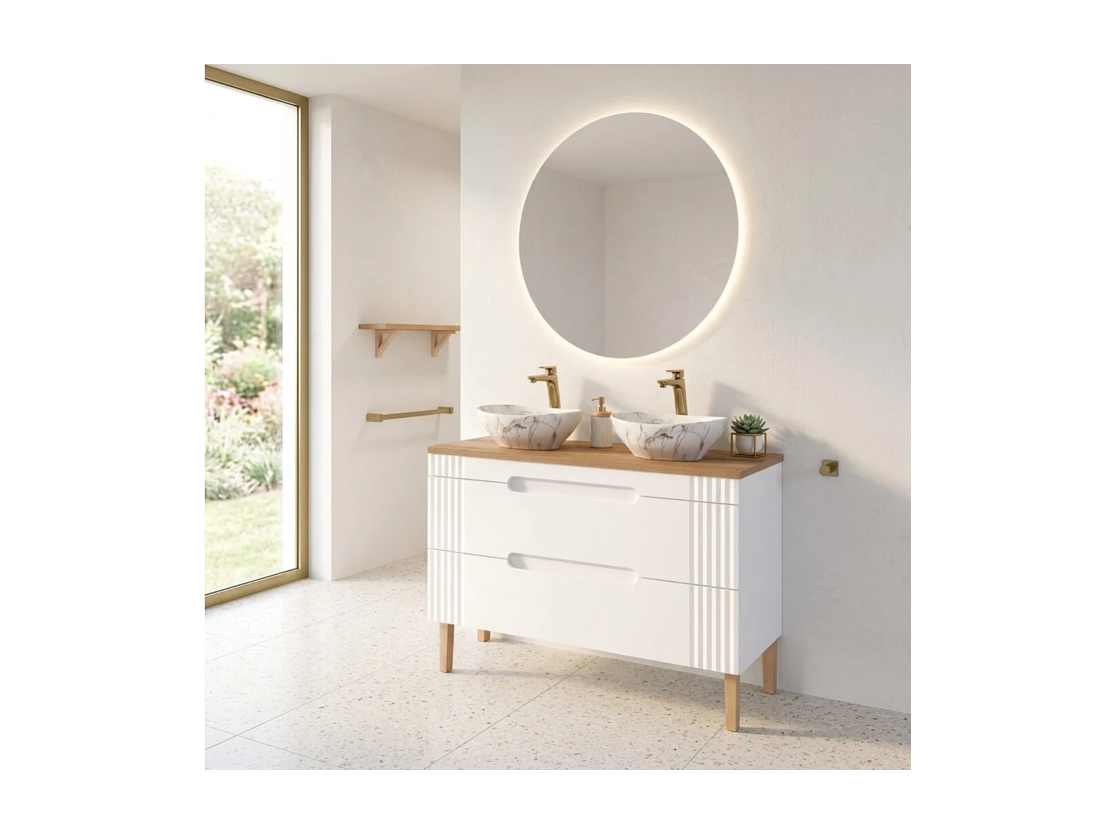 Ensemble FIDJI : meuble sous vasque 120cm + plan pour vasque + 2 vasques à poser asymétrique aspect marbre + pieds