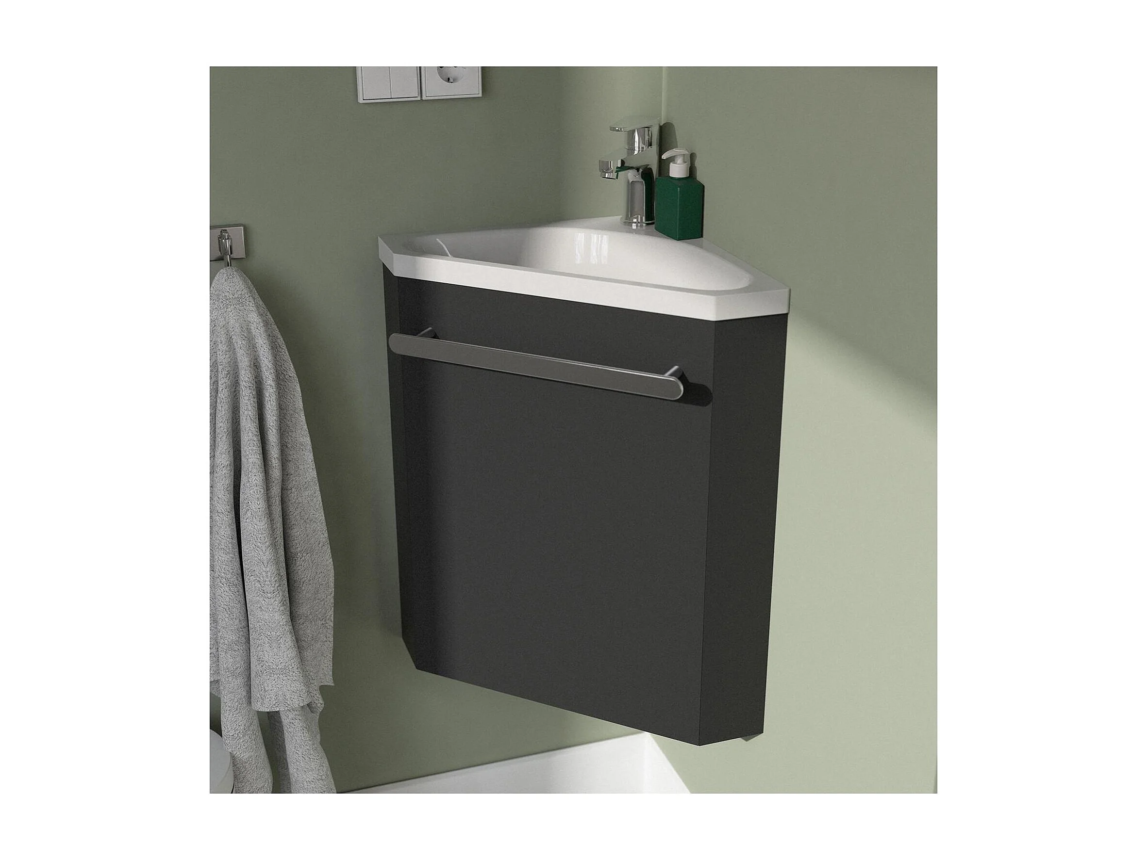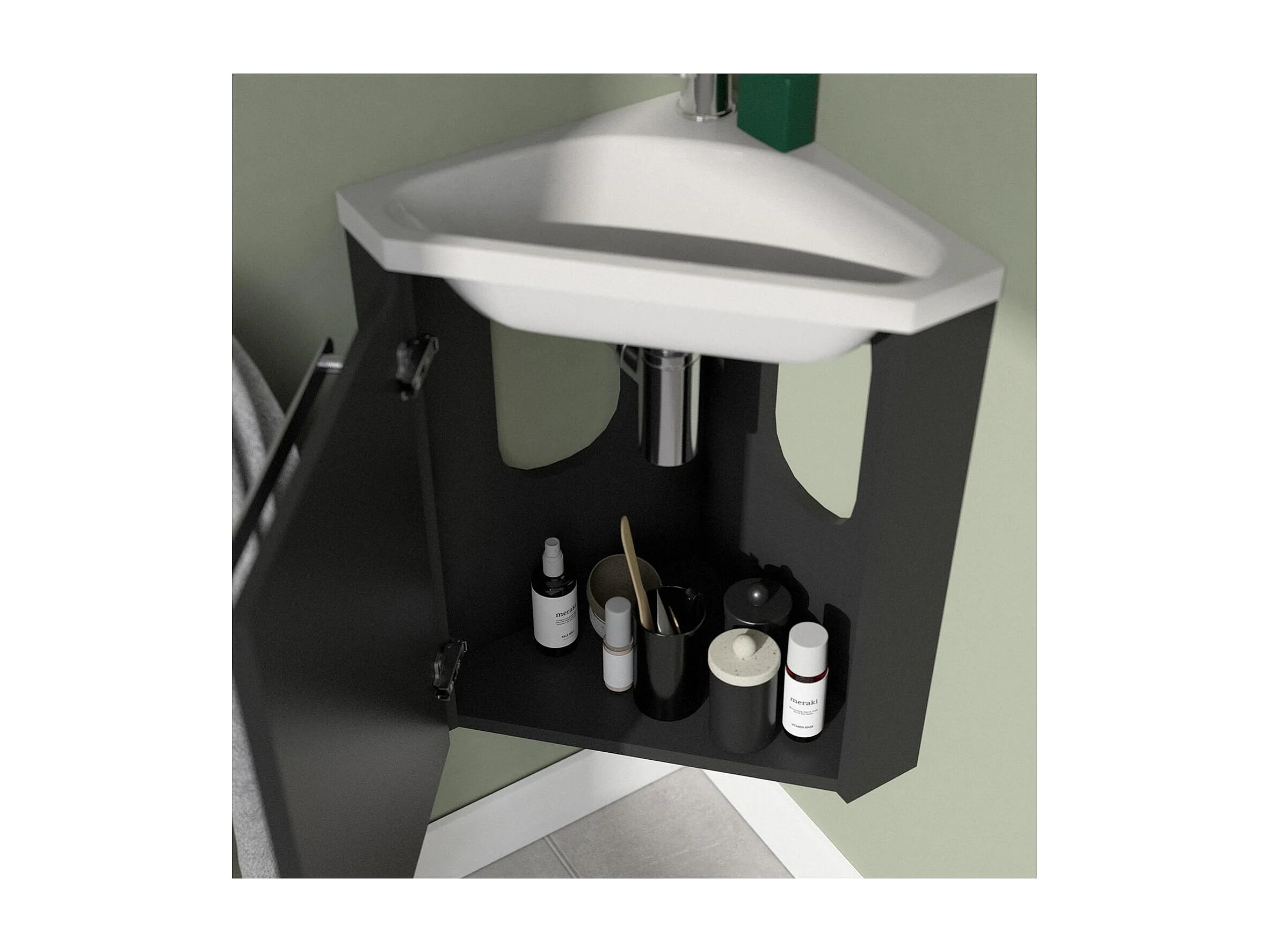 Ensemble lave-mains angle suspendu SKINO avec robinet et armoire d'angle