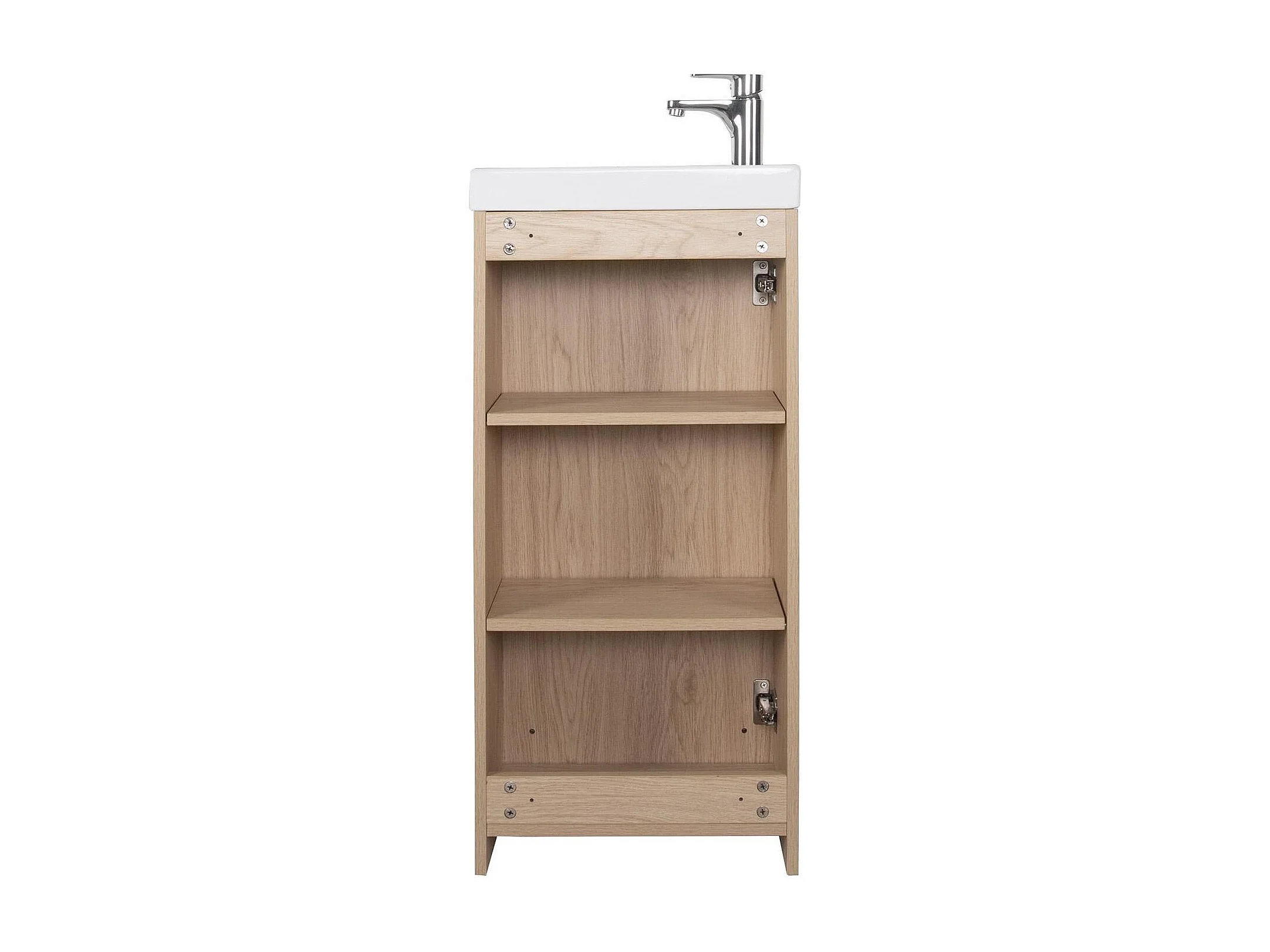 Meuble lave-mains sur pieds JOHANN décor chêne + vasque + robinet + miroir