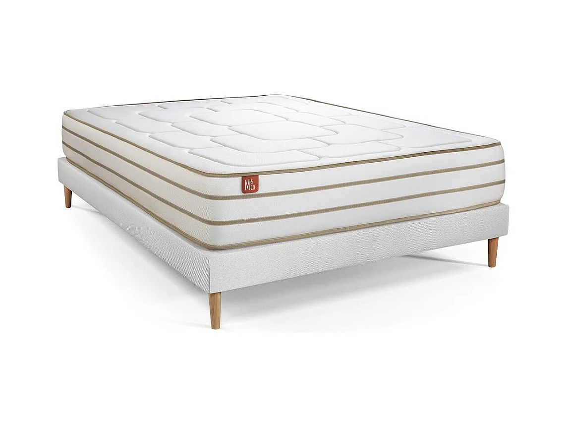 Ensemble LE DOUILLET 140x200cm Mémoire de forme BioVisco - Maxi épaisseur 26cm + sommier kit Blanc