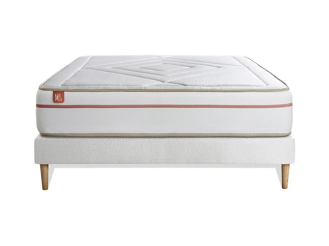 Ensemble LE PAISIBLE 140x190cm Mémoire de forme BioVisco - Ep. 24cm + sommier kit Blanc