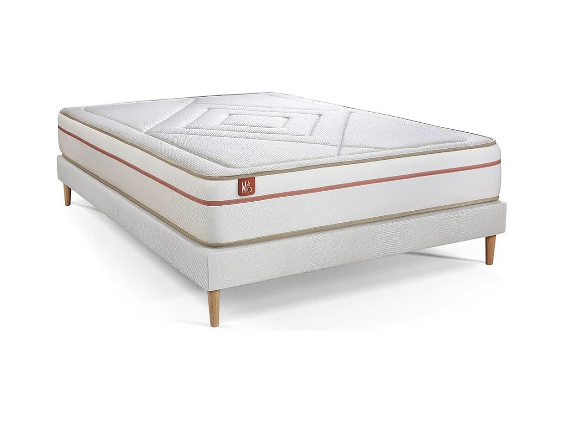 Ensemble LE PAISIBLE 140x200cm Mémoire de forme BioVisco - Ep. 24cm + sommier kit Blanc