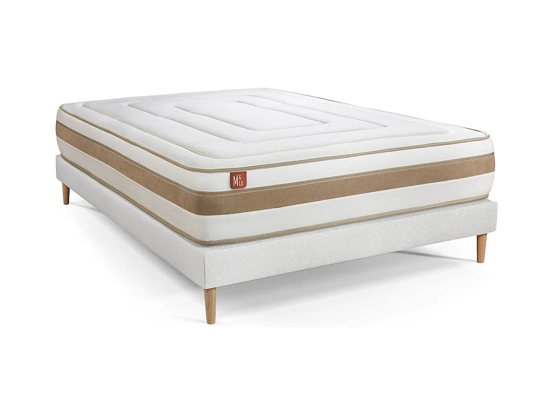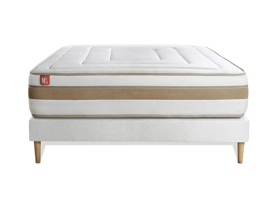 Ensemble LE RAFFINÉ 200x200cm Ressorts ensachés + Mémoire de forme BioVisco - Maxi épaisseur 26cm + sommier kit Blanc