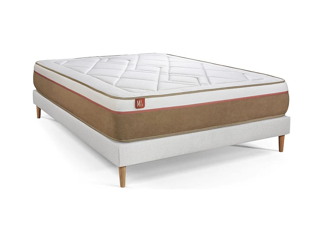 Ensemble LE SOYEUX 140x190cm Ressorts ensachés + Mémoire de forme BioVisco - Ep. 24cm + sommier kit Blanc