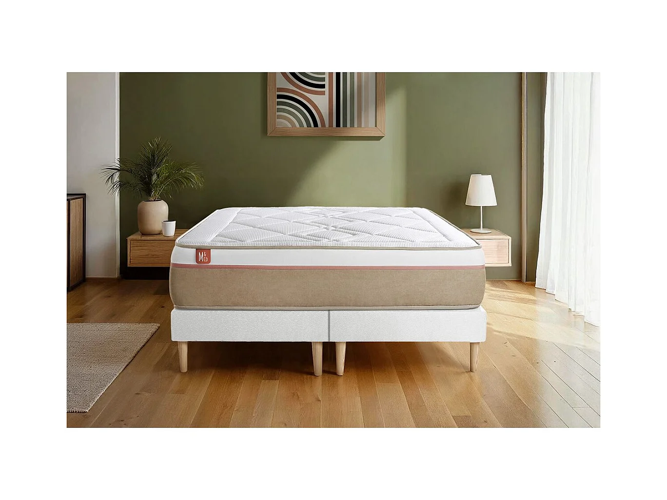 Ensemble LE SOYEUX 200x200cm Ressorts ensachés + Mémoire de forme BioVisco - Ep. 24cm + double sommiers Blanc