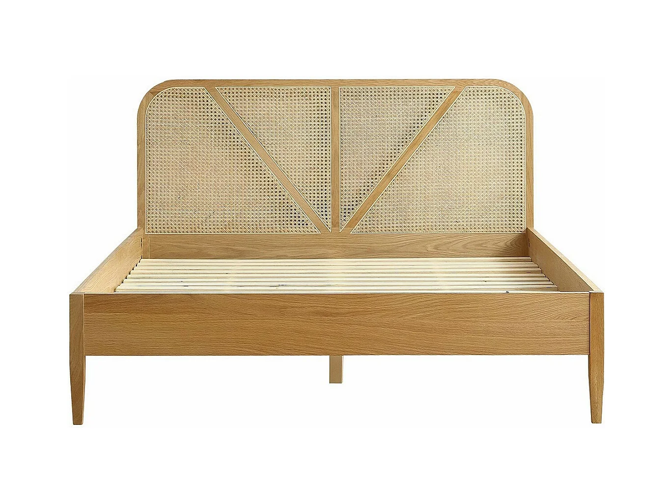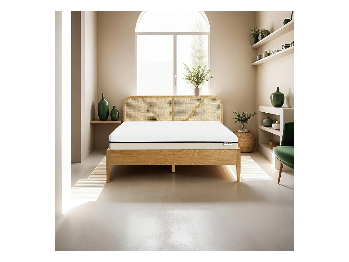 Ensemble lit 140x190 en bois et cannage Leonie + Matelas Hybride à ressorts ensachés et mémoire de forme - Spring Elite