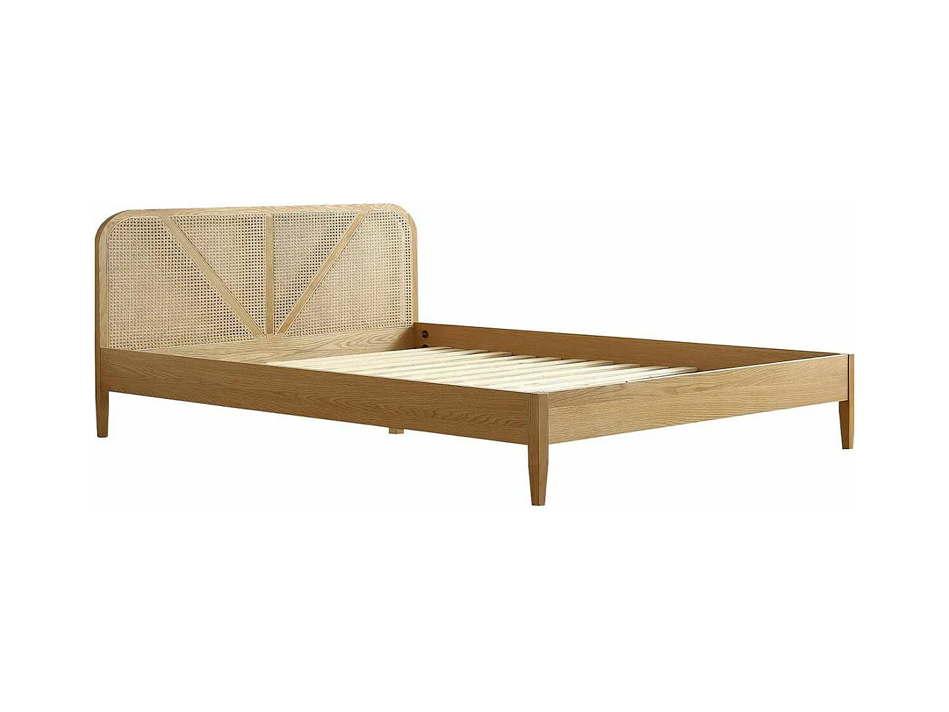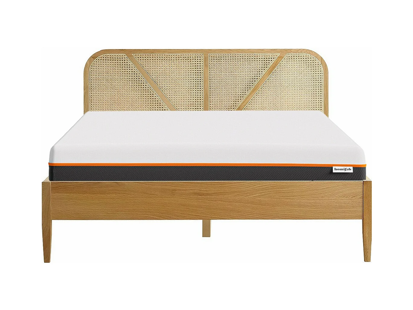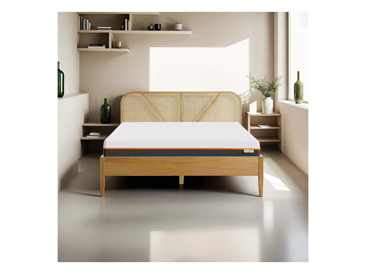 Ensemble lit 140x190 en bois et cannage Leonie + Matelas mousse gel à mémoire de forme, double confort - Dual Confort