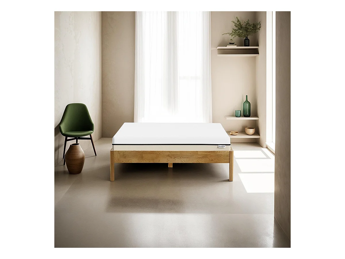 Ensemble lit 140x190 en chêne massif Aina + Matelas Hybride à ressorts ensachés et mémoire de forme - Spring Elite