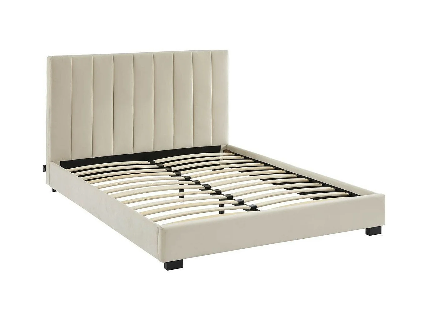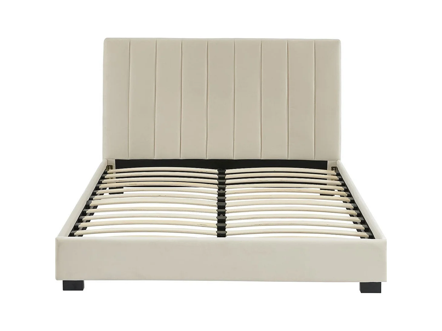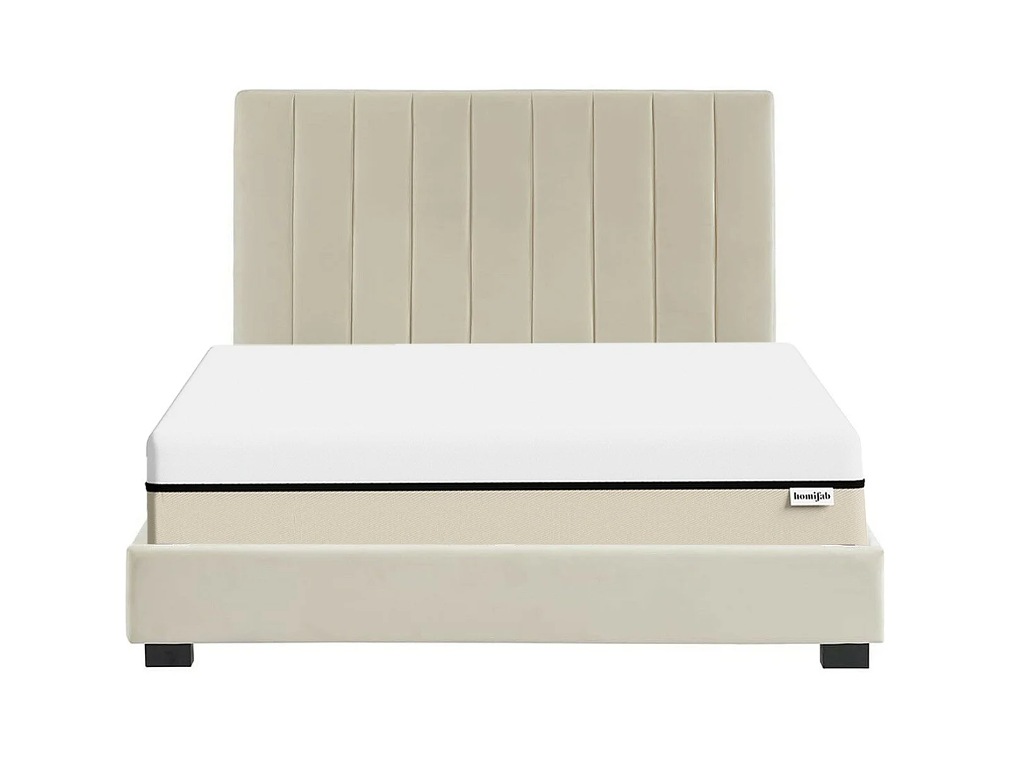 Ensemble lit 140x190 en velours beige William + Matelas Hybride à ressorts ensachés et mémoire de forme - Spring Elite