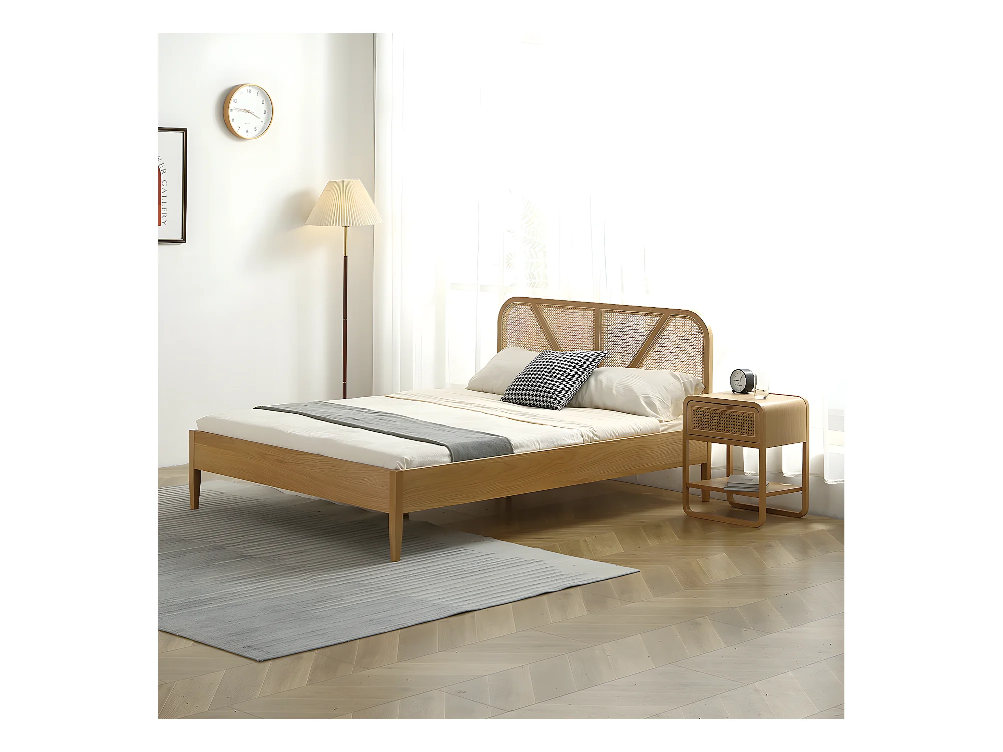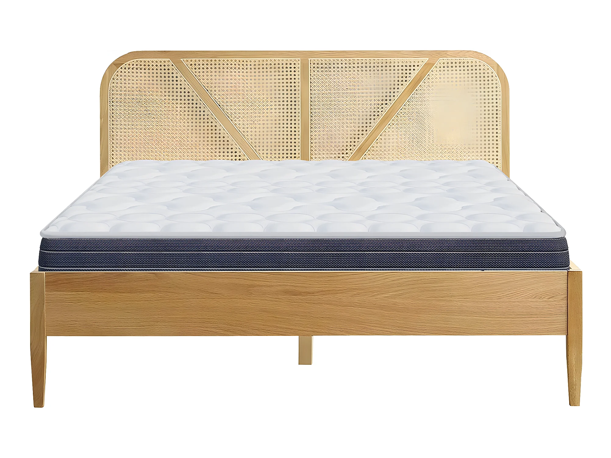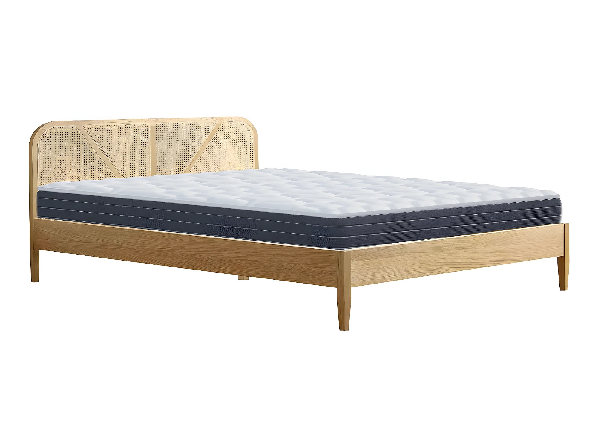 Ensemble lit adulte 140x190 cm en bois avec tête de lit en cannage Leonie + Matelas mémoire de forme Memo HR